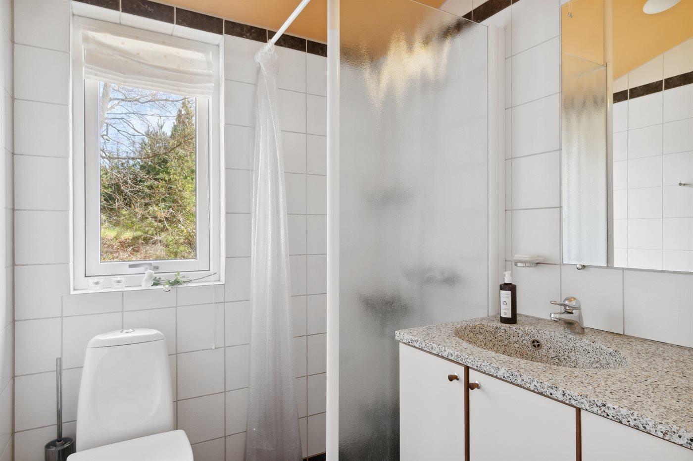 Der er 1 badeværelse med bruseniche og 1 toilet.