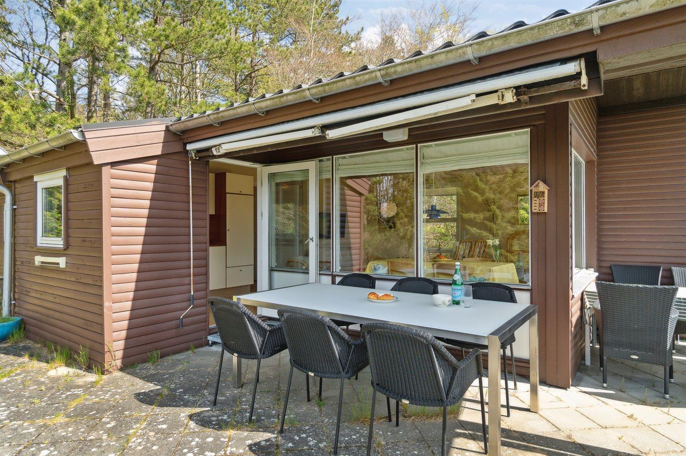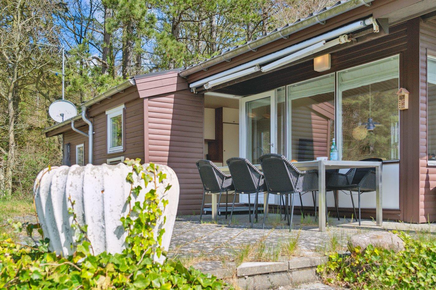 Ferieboligen er beliggende på en 1619 m² stor naturgrund. Der er 350 m til havet. Nærmeste forretning er beliggende i en afstand af 1000 m. Til ferieboligen hører åbent terrasseareal. Desuden er der overdækket terrasse. Grill til rådighed. Parkering ved ferieboligen.