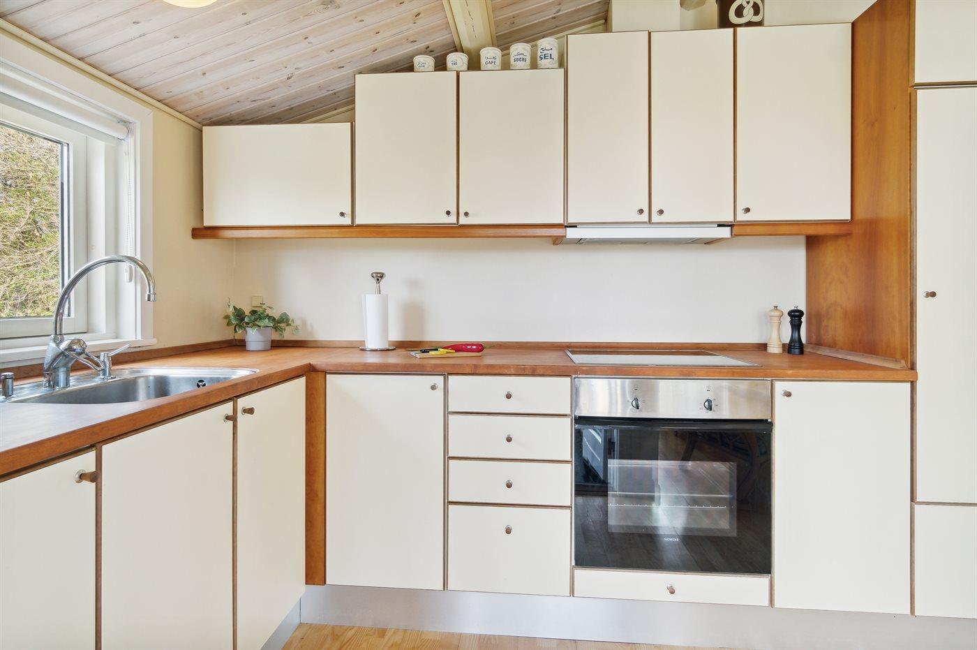 Køkkenet er udstyret med 2 køleskabe. Der er 4 keramiske kogeplader, varmluftovn samt opvaskemaskine.
