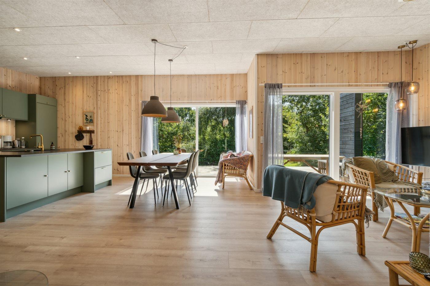 Sommerhuset er udstyret med moderne køkkenfaciliteter, der er ideel til at tilberede lækre måltider. Køkkenet er fuldt udstyret med alt det nødvendige køkkengrej og apparater, såsom ovn, komfur, mikroovn og køleskab. Det hyggelige spiseområde er det perfekte sted at samles omkring et måltid og dele ferieoplevelser.