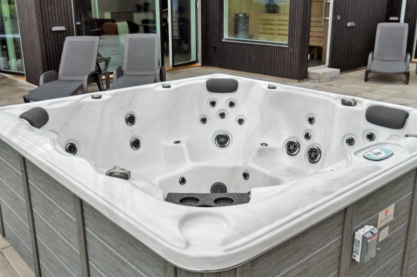 Der er mulighed for afslapning i udendørs standvandsspa til 6 personer.