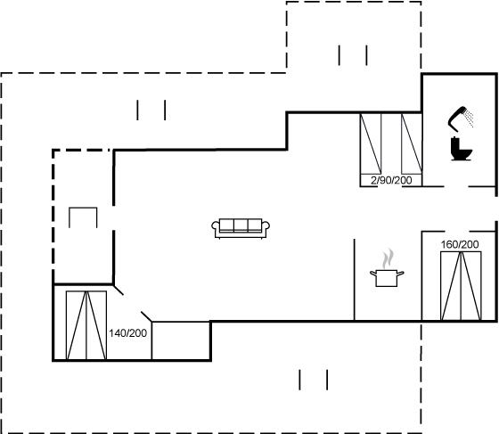 Der er i alt 3 soveværelser. Sovepladserne fordeler sig på: 4 sovepladser i dobbeltsenge. 2 sovepladser i enkeltsenge.
