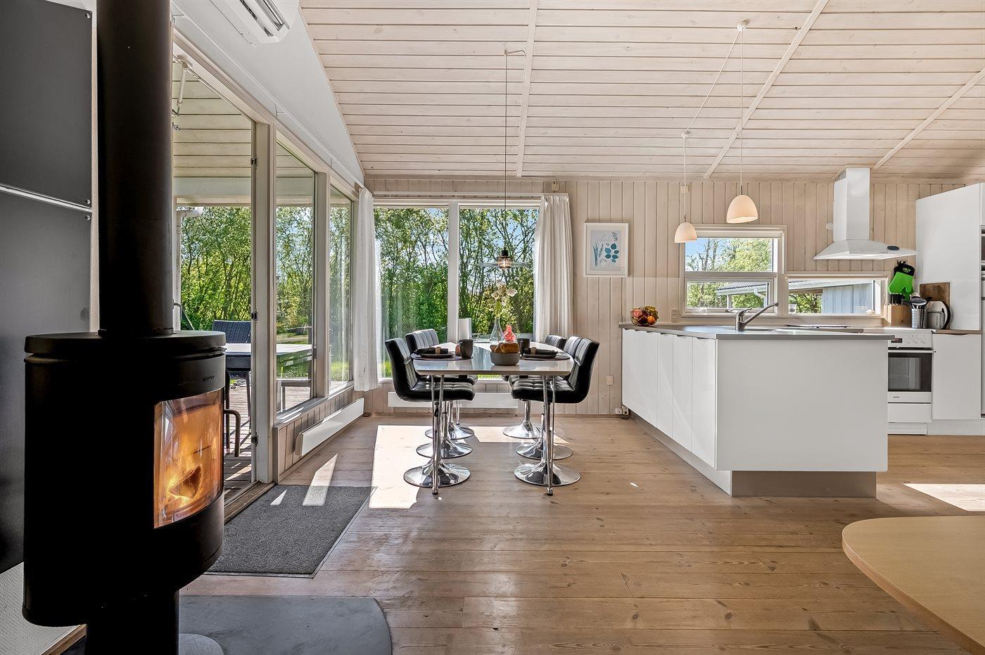 Køkkenet er udstyret med 1 køleskab. Der er 4 induktionskogeplader, varmluftovn, mikrobølgeovn samt opvaskemaskine.