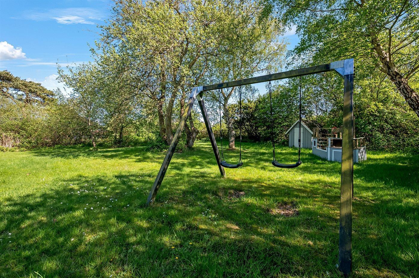 Ferieboligen er beliggende på en 1200 m² stor havegrund. Der er 300 m til havet. Nærmeste forretning er beliggende i en afstand af 1000 m. Til ferieboligen hører åbent terrasseareal. Desuden er der overdækket terrasse. Gynge. Sandkasse. Legehus. Fodboldmål. Der ligger en legeplads i en afstand af 1000 m. Grill til rådighed. Der er carport til rådighed. Parkering ved ferieboligen.