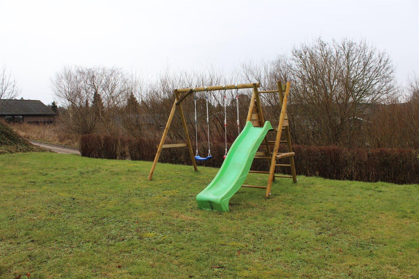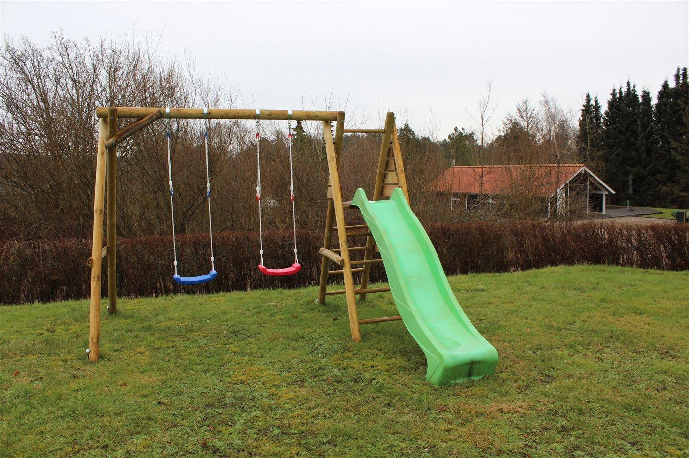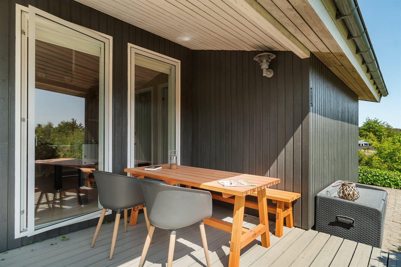Ferieboligen er beliggende på en 1225 m² stor naturgrund. Der er 300 m til havet. Nærmeste forretning er beliggende i en afstand af 2000 m. Til ferieboligen hører 50 m² terrasseareal. Desuden er der overdækket terrasse. Gynge. Rutchebane. Der findes Weber kuglegrill. Parkering ved ferieboligen.
