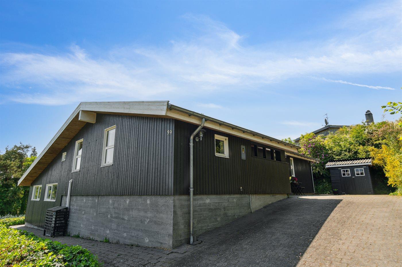 Lyst og indbydende sommerhus med god plads bygget i forskudt plan. Huset ligger højt på en skrånende grund med dejlige terrassearealer ligeledes i forskellige niveauer med udsigt over grunden. Området er kuperet og er beliggende i en del af den naturskønne Nationalpark Mols Bjerge. Tæt på ligger vandet og børnevenlig badestrand samt den hyggelige by Ebeltoft.