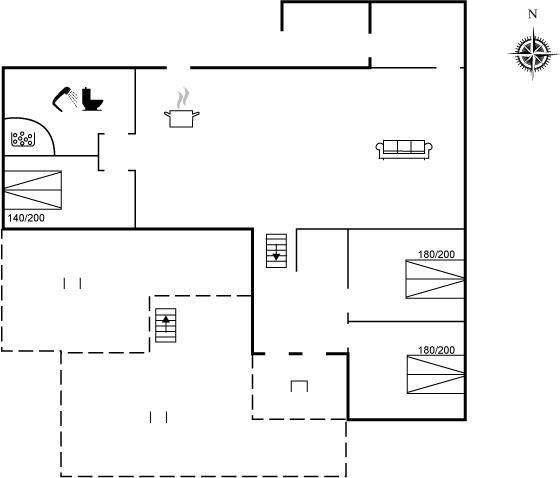 Der er i alt 3 soveværelser. Sovepladserne fordeler sig på: 6 sovepladser i dobbeltsenge. Derudover er der 1 stk. barneseng.