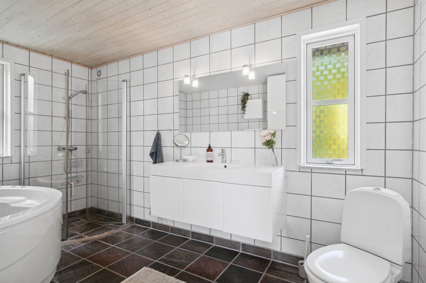 Der er 1 badeværelse med bruseniche og 1 toilet.. Der er gulvvarme på 1 badeværelse.