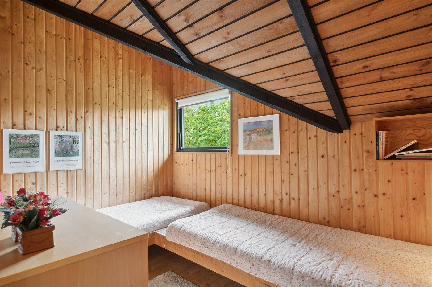 Der er i alt 3 soveværelser. Sovepladserne fordeler sig på: 2 sovepladser i dobbeltseng. 2 sovepladser i enkeltsenge. 2 sovepladser i køjeseng. Derudover er der 1 stk. barneseng.