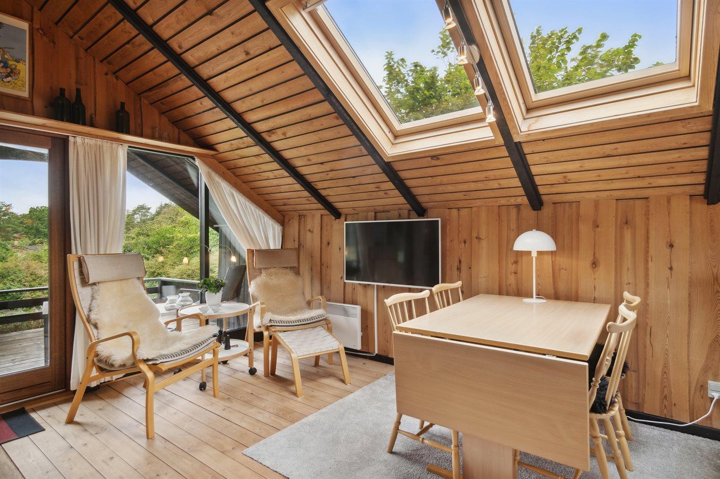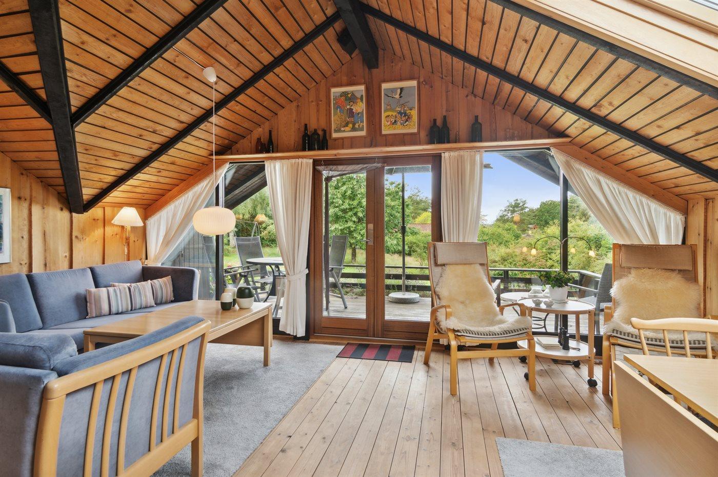 Indendørs finder du en hyggelig stue og spisestue, et veludstyret køkken og komfortable soveværelser. Udenfor er der en dejlig terrasse til udendørs måltider og en rummelig grund, hvor den smukke natur har fået lov til at leve.