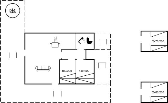 Der er i alt 2 soveværelser. Sovepladserne fordeler sig på: 4 sovepladser i dobbeltsenge. 4 sovepladser i enkeltsenge. 4 af disse sovepladser befinder sig i 2 annekser. Derudover er der 1 stk. barneseng.