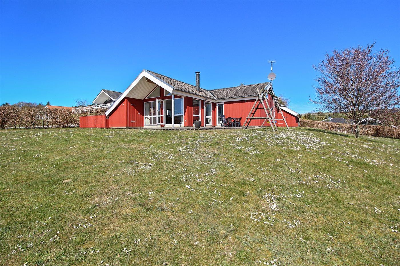 Dette energivenlige, pragtfulde og særdeles veludstyrede sommerhus er beliggende i bakkerne ved Femmøller Strand på en kuperet naturgrund, 800 m fra sandstrand. Huset er i træ, bygget i 1996 og senest moderniseret i 2015 med bl.a. nyt køkken og nye gulve.