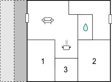 Opholdsstue/køkken - 1 Soveplads. (Enkeltseng(e)).