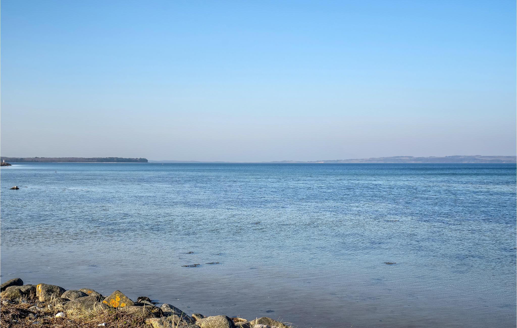 Moderne ferielejlighed i første række til Ebeltoft Vig med panoramaudsigt og egen badebro tæt på by og naturoplevelser.