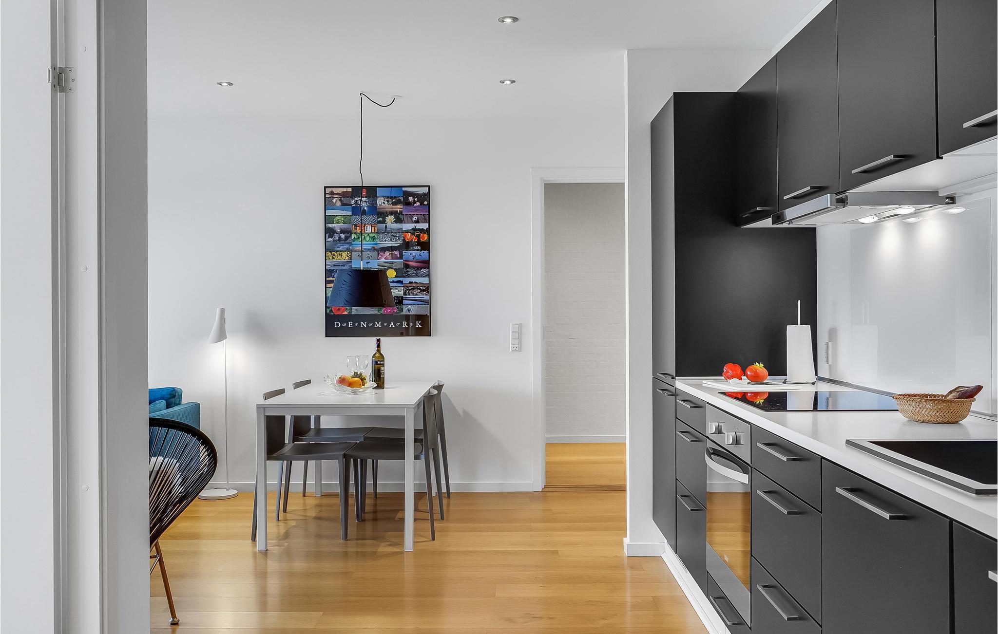 Denne lækre ferielejlighed er topmoderne og smagfuldt indrettet. Den bliver jeres skønne base mellem feriens mange udflugter. Lejligheden er del af et lejlighedskompleks lige ud til vandet og med egen badebro. Start dagen friskt med en dukkert efterfulgt af kaffe og morgenmad på terrassen, mens I nyder udsigten over vandet.