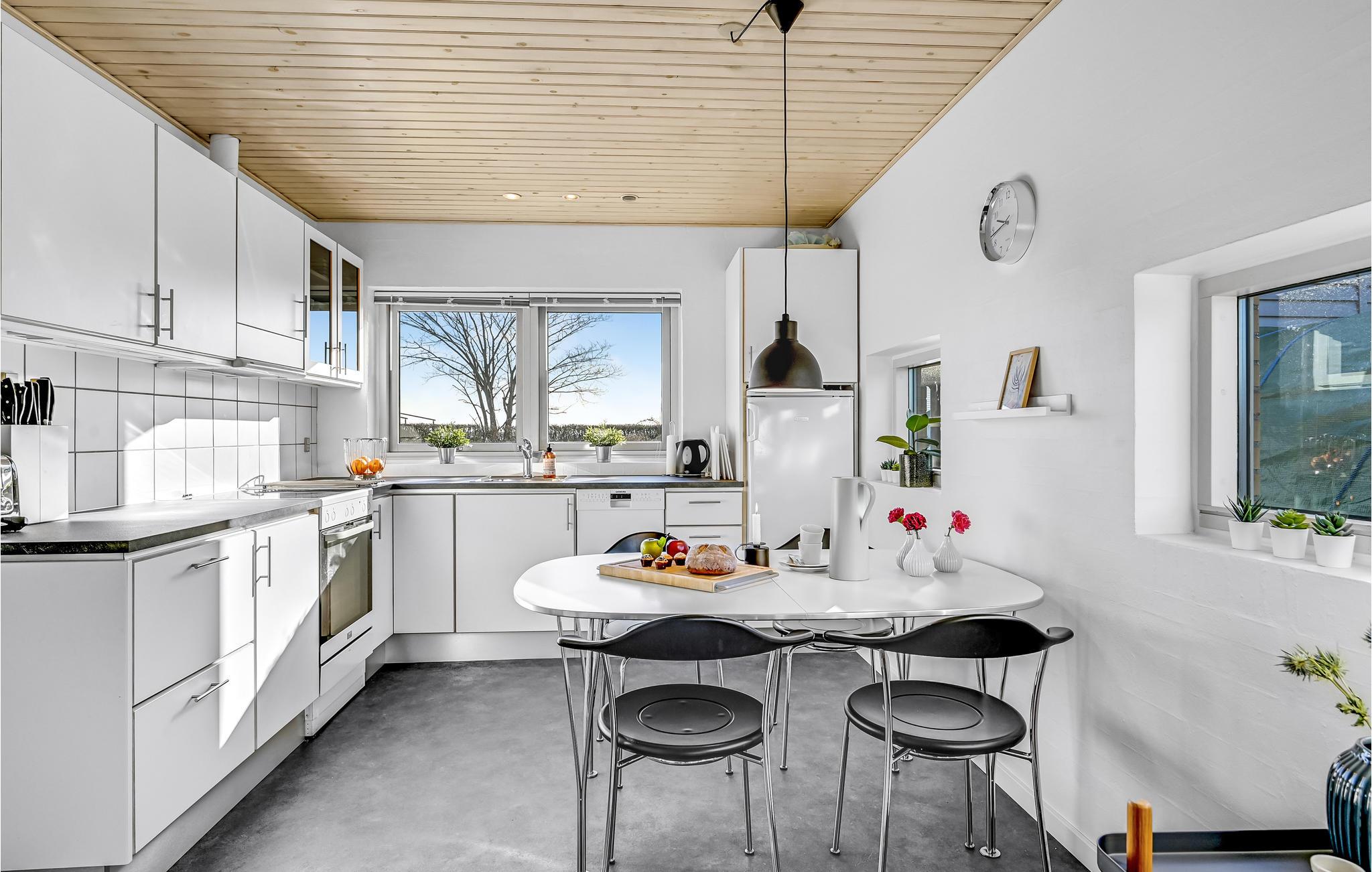 Velkommen i dette fine feriehus, hvor I bor kun få meter fra vandet. Huset er lyst og hjemligt indrettet med en god stue, hvor I i de koldere årstider kan varme jer foran brændeovnen. Nyd muligheden for forskelige udendørsaktiviteter i området eller på naturgrunden, hvor der er plads til både afslapning og børnenes leg i det fri. Indenfor venter jer altid en varm, hyggelig stemning.