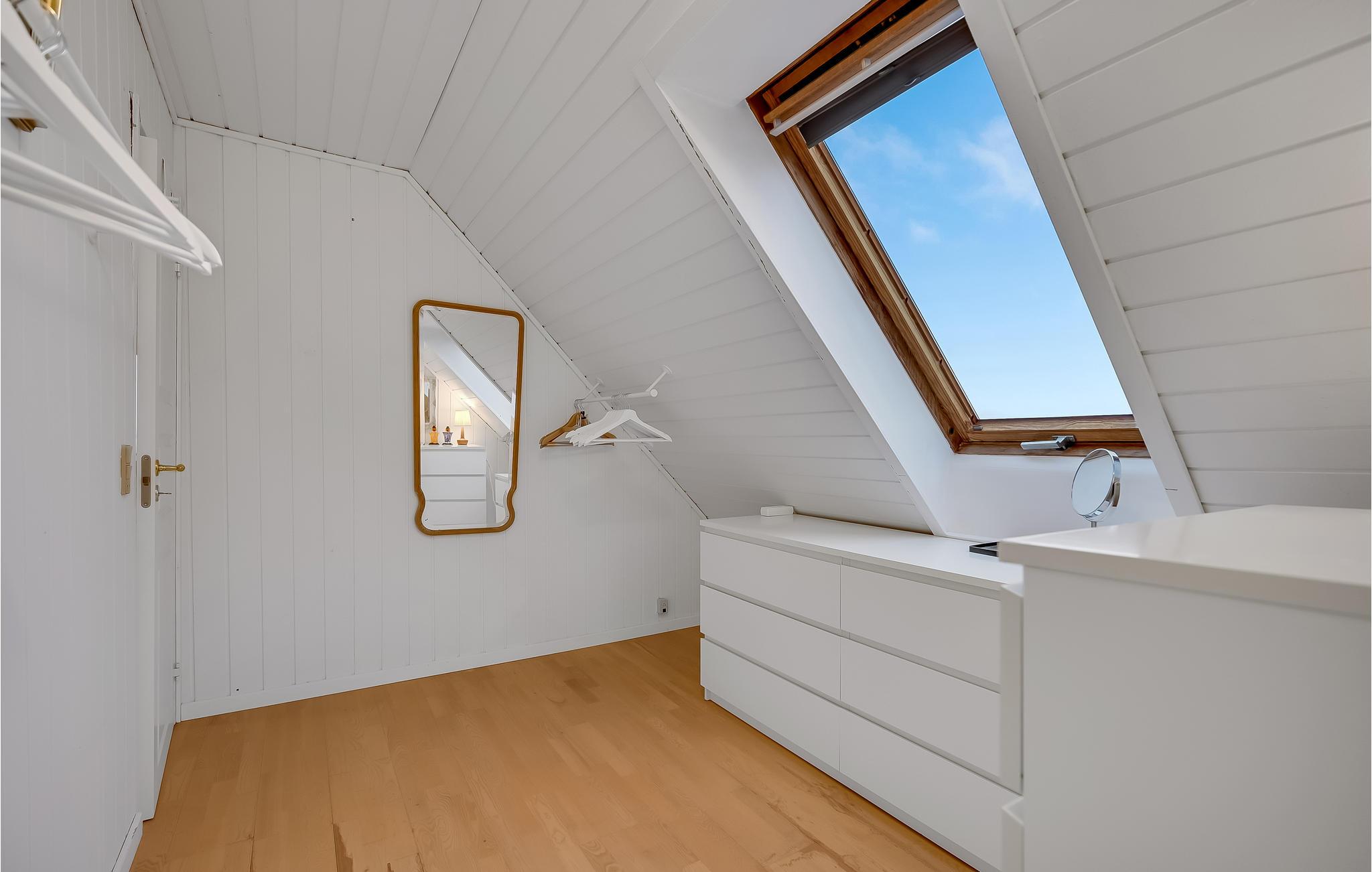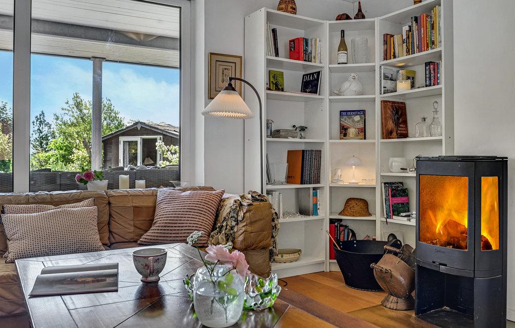 Glæd jer til en dejlig ferie i dette smukke og lyst indrettede feriehus i Egå. Huset centrerer sig om det store opholdsrum med integreret køkken, hvor I kan lade familiens kok slå sig løs, mens de andre gæster eller børnene slapper af i de bløde møbler. I vinterhalvåret kan I nyde varmen fra brændeovnen. Rummet præges også af den elegante trappe til overetagen, hvor I blandt andet finder et skønt soveværelse med altan.