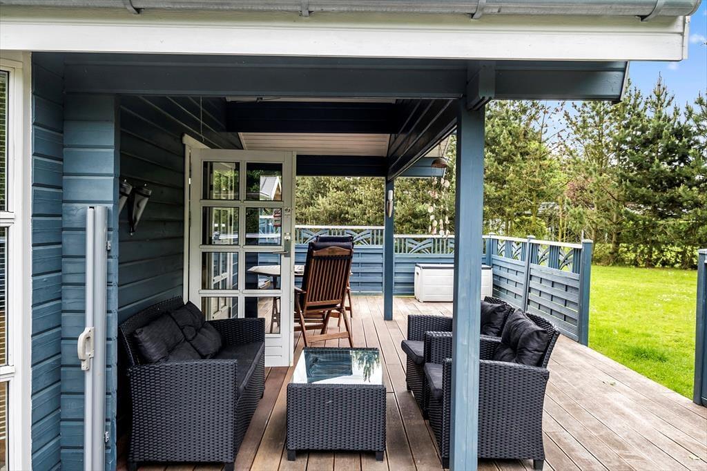 Huset ligger på en hyggelig havegrund for enden af Hybenvej, hvilket betyder, at I ikke bliver generet af trafiklarm fra forbipasserende. Der er store åbne og overdækkede terrasser, som giver masser af plads til rendyrket råhygge med grill, kortspil og hvad nu ellers, man kan finde på, når ferien skal nydes.