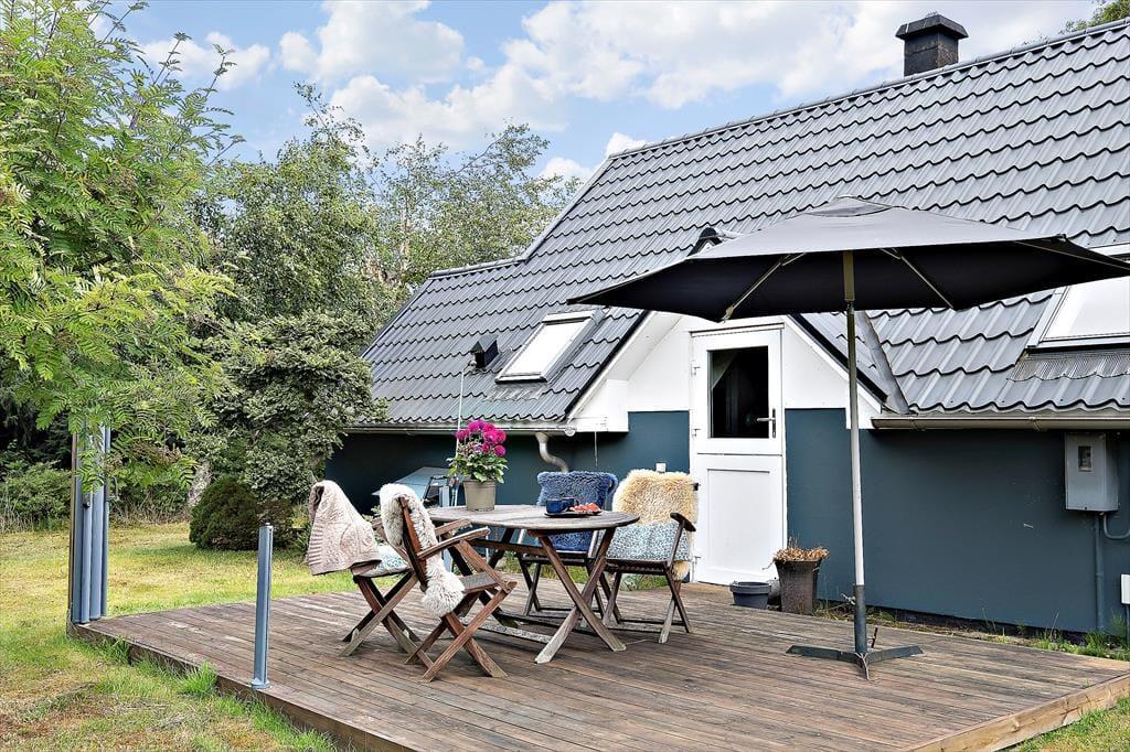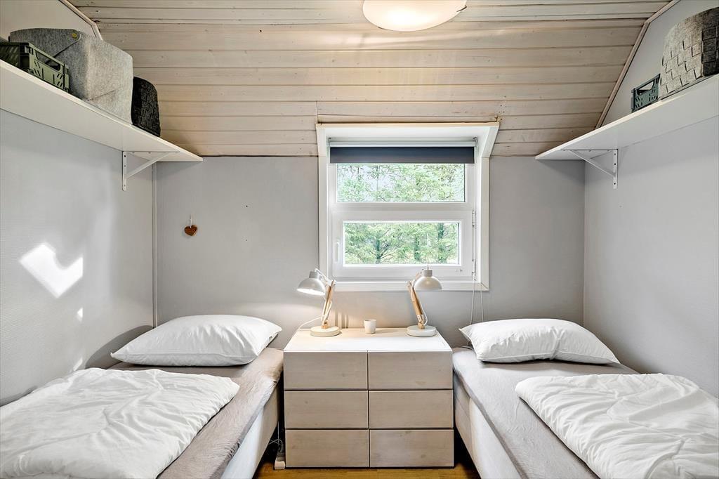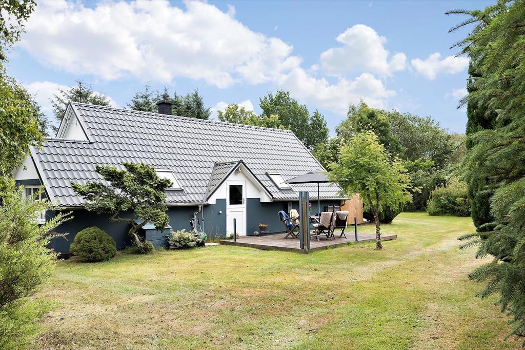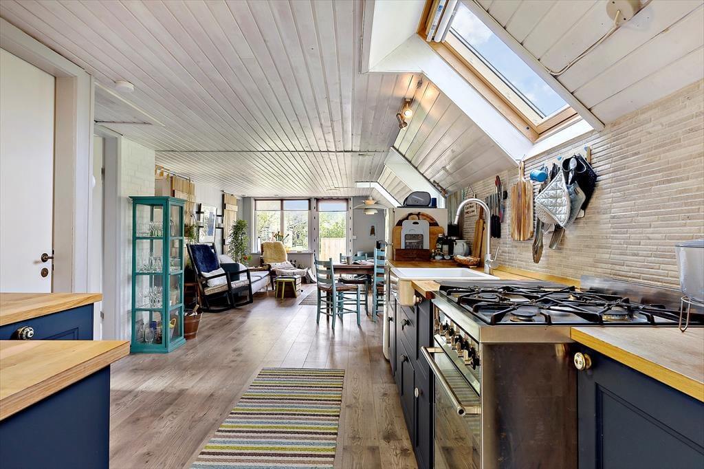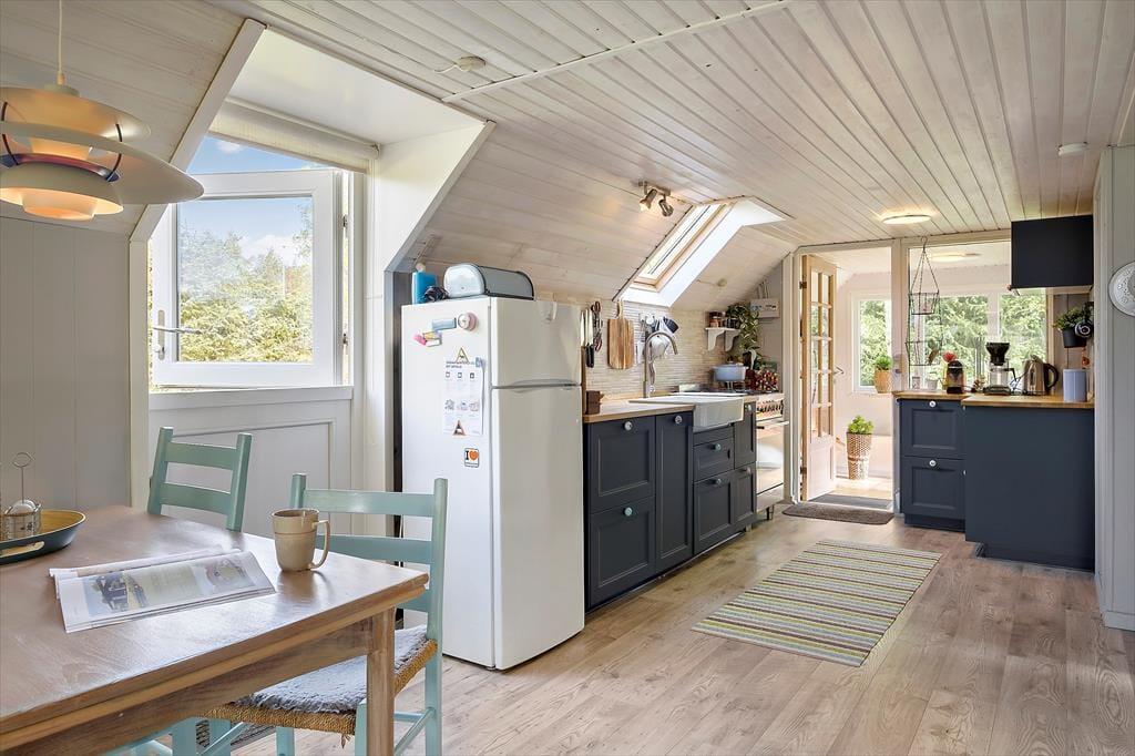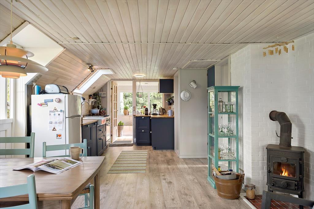 Der er gjort noget ekstra ud af indretningen i det 70 m2 store hus, så rummene emmer af hygge og velvære. Køkken og stue er slået sammen, så når du står ved gasblussene og kræser om maden, kan du sagtens nyde samværet med resten af familien. Maden kan I sammen nyde ved spisebordet, der står i nærheden af Morsø-brændeovnen, og i sofaafdelingen har I mange komfortable siddepladser, hvis I vil se tv, læse eller løse krydsogtværser. På sommerhusets tre soveværelser har I en dobbeltseng, to enkeltsenge og en dobbeltseng at gøre godt med, og på badeværelset er der – foruden en bruseniche – en vaskemaskine, så feriegarderoben kan blive frisket op undervejs.