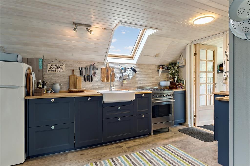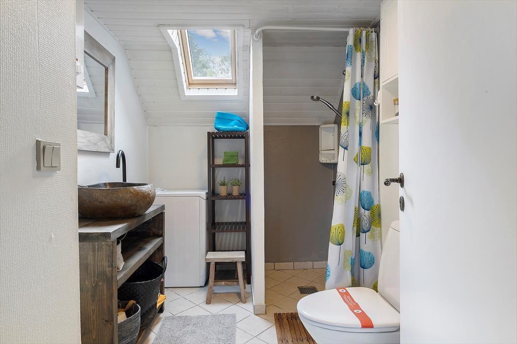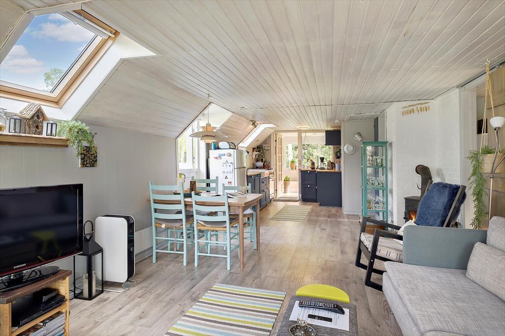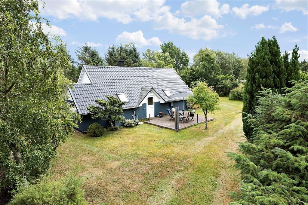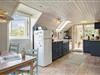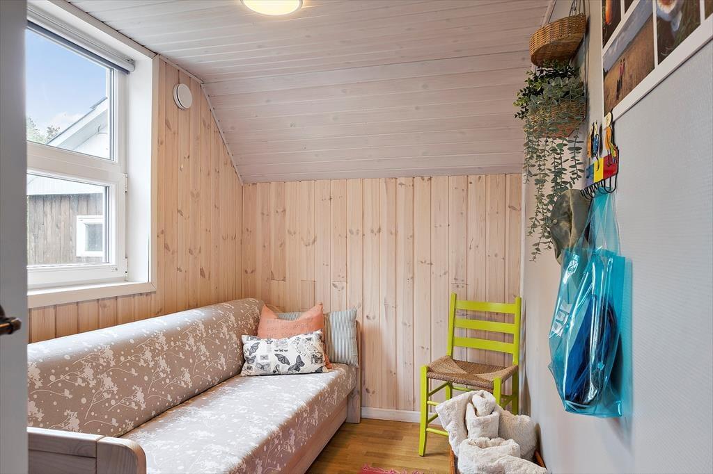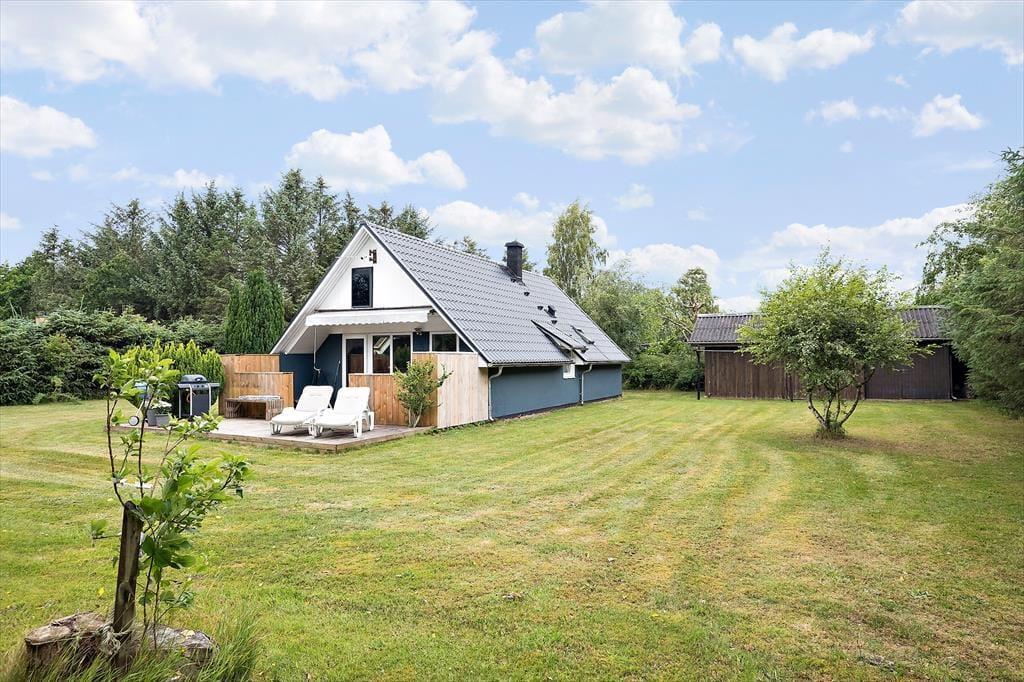 Der er gjort noget ekstra ud af indretningen i det 70 m2 store hus, så rummene emmer af hygge og velvære. Køkken og stue er slået sammen, så når du står ved gasblussene og kræser om maden, kan du sagtens nyde samværet med resten af familien. Maden kan I sammen nyde ved spisebordet, der står i nærheden af Morsø-brændeovnen, og i sofaafdelingen har I mange komfortable siddepladser, hvis I vil se tv, læse eller løse krydsogtværser. På sommerhusets tre soveværelser har I en dobbeltseng, to enkeltsenge og en dobbeltseng at gøre godt med, og på badeværelset er der – foruden en bruseniche – en vaskemaskine, så feriegarderoben kan blive frisket op undervejs.