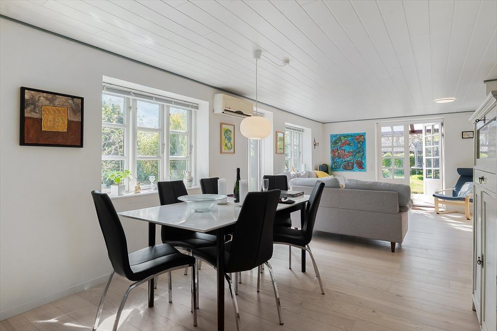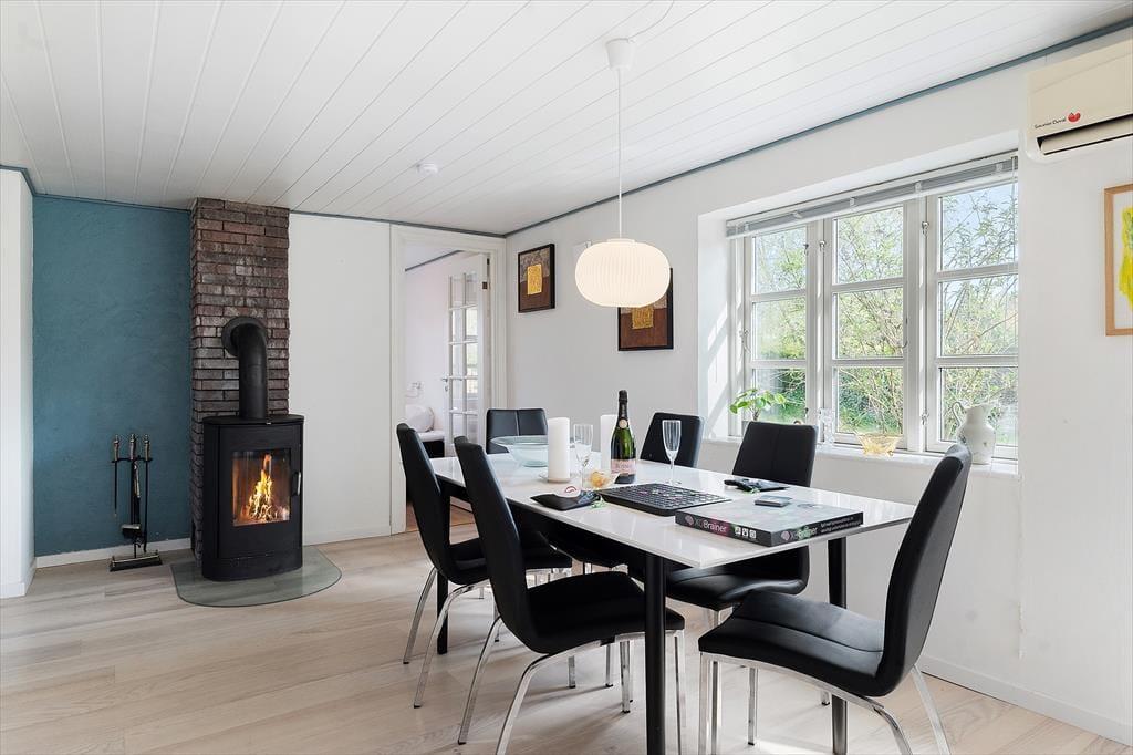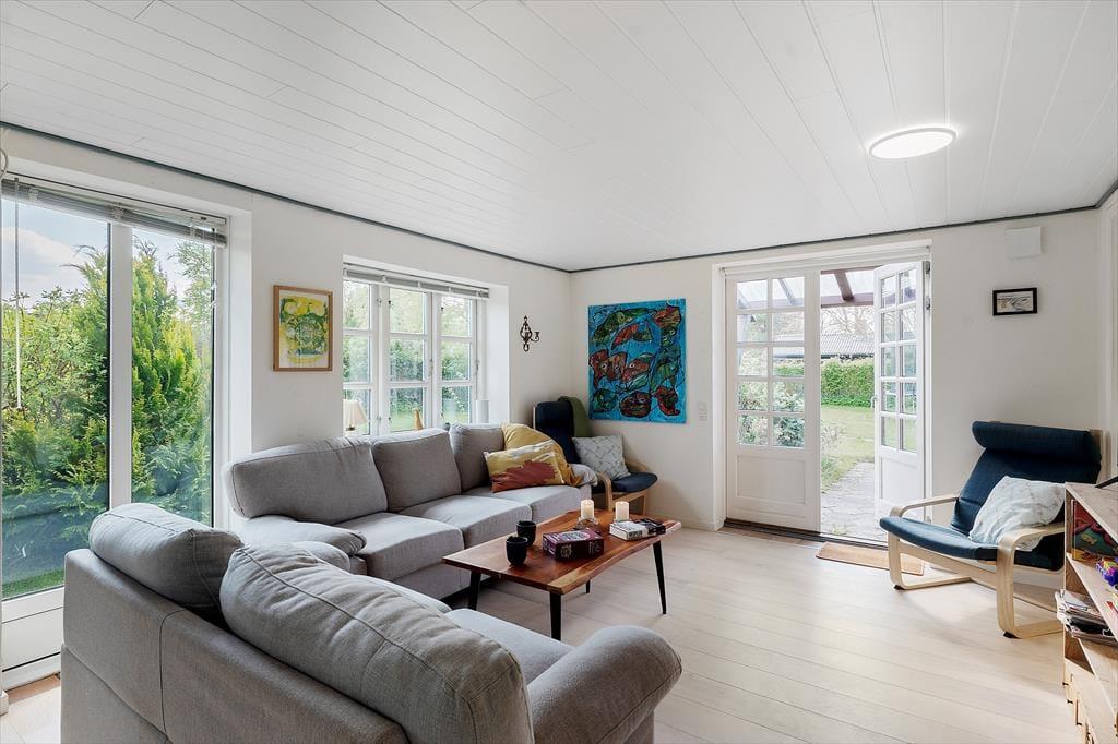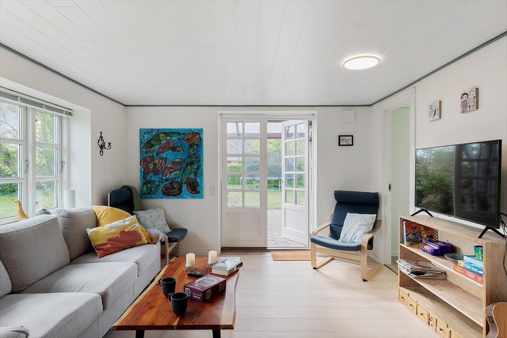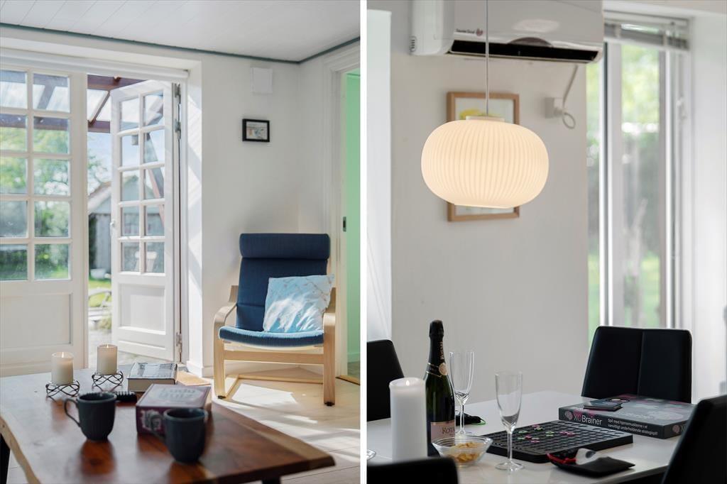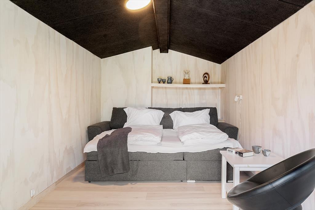 Med sine store vinduespartier og hjemlige atmosfære er det svært ikke at føle sig godt tilpas, så snart du træder indenfor i dette sommerhus. Opholdsrummet danner rammen om det meste af ferien, og her er både god plads til fælles madlavning, spil ved spisebordet og rolige stunder med en bog i sofaen. I de hyggeligt indrettede værelser kan både små og store feriegæster finde sig godt til rette – og hvis I er flere generationer af sted eller bare vil give teenageren lidt privatliv, så byder annekset på to ekstra sovepladser og sit helt eget, fredelige hjørne. Stemningen er afslappet og rar, og der er masser af mulighed for at trække sig tilbage og nyde en stille stund – med morgenkaffen eller en god film.