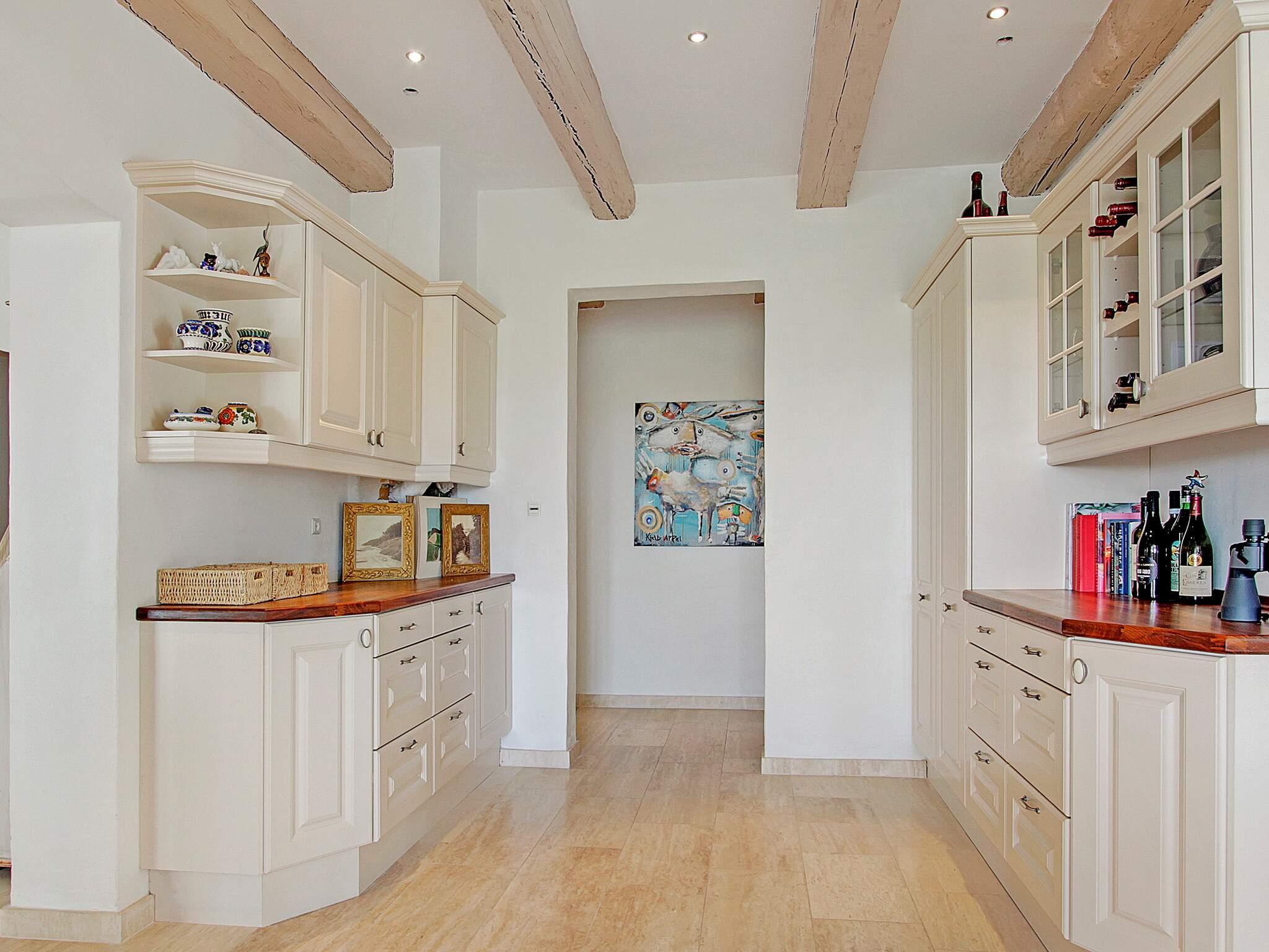 Der er hele 570 m2 fordelt på 2 etager, som bl.a. byder på syv soveværelser samt hems, så huset fungerer som en eksklusiv feriebolig med 22 sovepladser. I stueetagen finder I fire soveværelser og badeværelse, et dejligt køkken med god spiseplads og fantastisk udsigt over Kattegat, som ligger i åben forbindelse med flere eksklusive stuer med flygel og pejs. samt aktivitetsrum med bl.a. poolbord.
