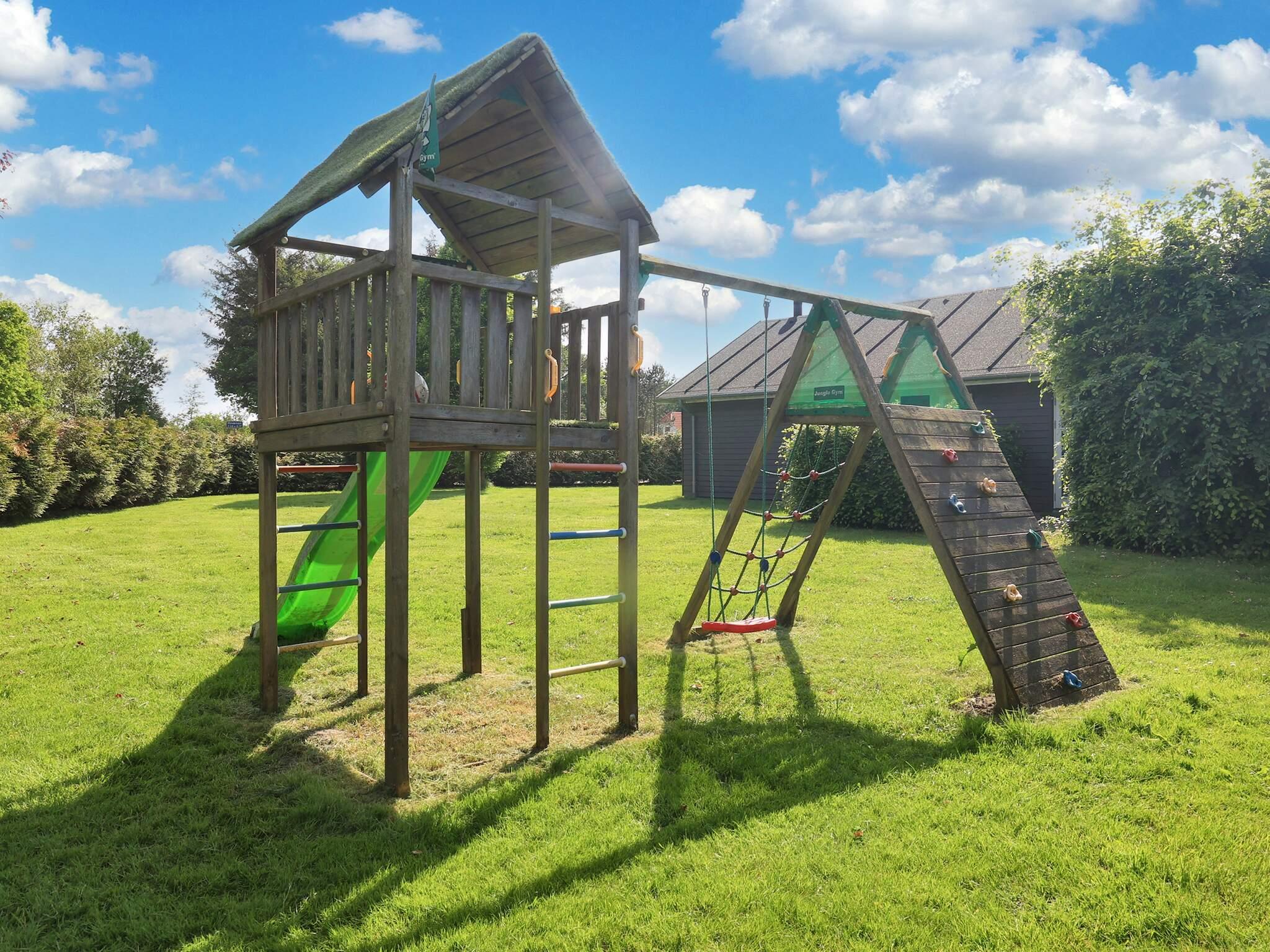 Huset ligger på en rolig havegrund med plæne og legetårn, så der er rig lejlighed til leg og boldspil eller blot til at nyde solen og udelivet. På begge sider af huset er der gode terrasser, som indbyder til grill, solbadning og afslapning. Sommerhusområdet er roligt og der er nem adgang til indkøb og badning i enten Limfjorden eller Kattegat.