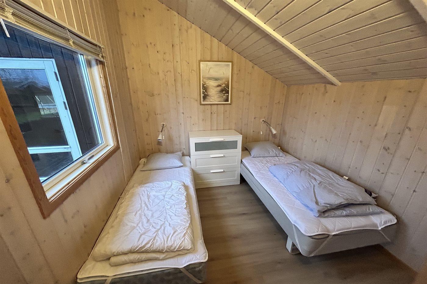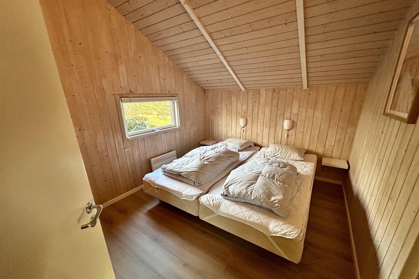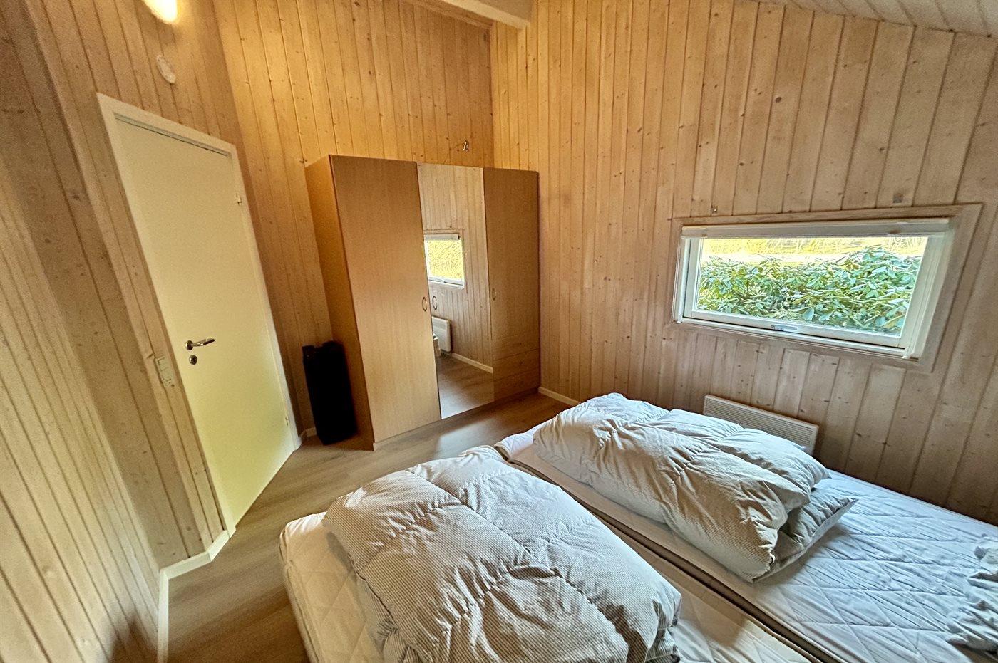 Der er i alt 5 soveværelser. Sovepladserne fordeler sig på: 2 sovepladser i dobbeltseng. 4 sovepladser i enkeltsenge. 4 sovepladser i køjesenge. 4 af disse sovepladser befinder sig i et anneks (fordelt på 2 soveværelser). Derudover er der 1 stk. barneseng.