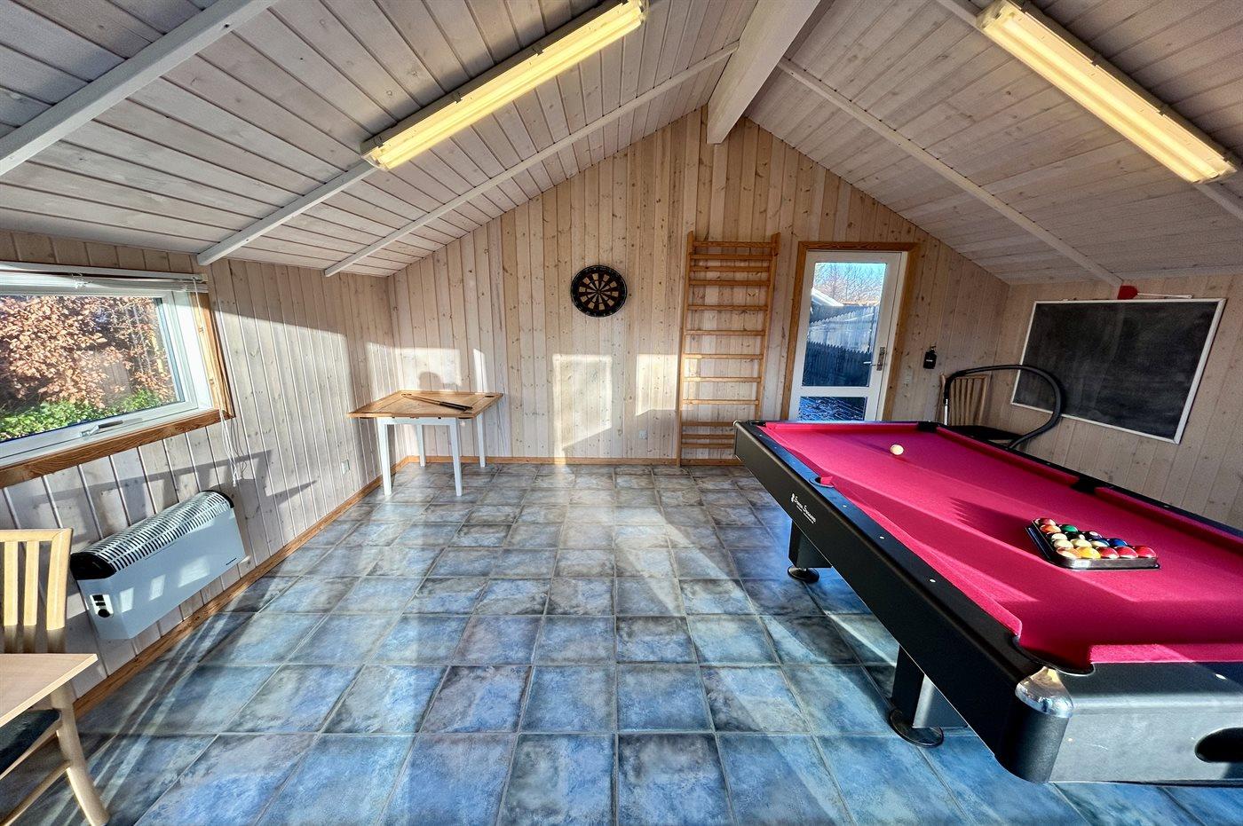 I aktivitetsrummet er der følgende udstyr: Poolbord. Dart. Bobspil.