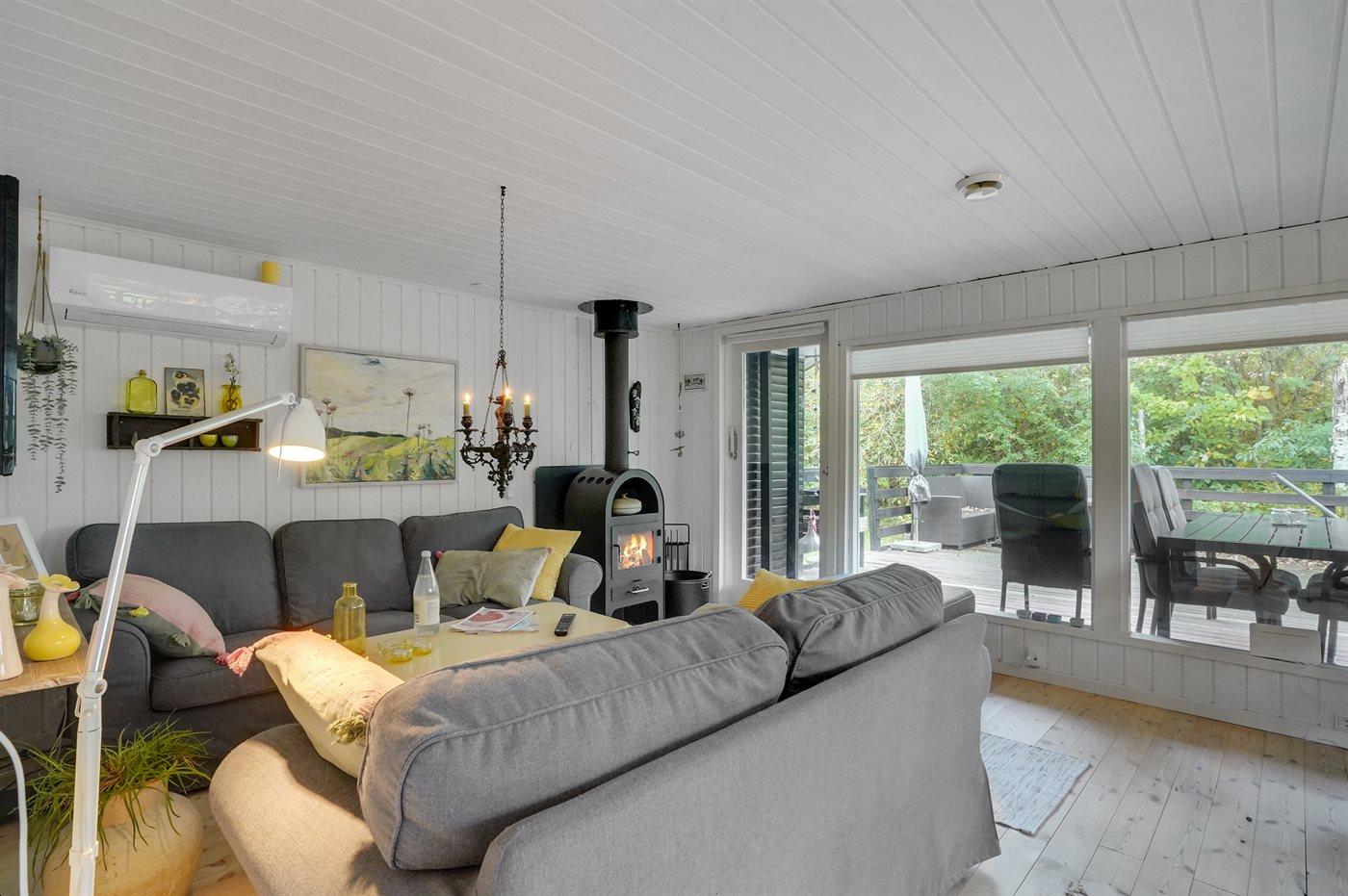 Fantastisk hyggeligt sommerhus med en stemning, som oser af sol, sommer, strand og ferie. Går du en tur rundt i den store lukkede have, finder du en hængekøje inde imellem træerne, hvor du kan tage en lille lur. På terrassen, som både er åben og overdækket, finder du en lounge afdeling,