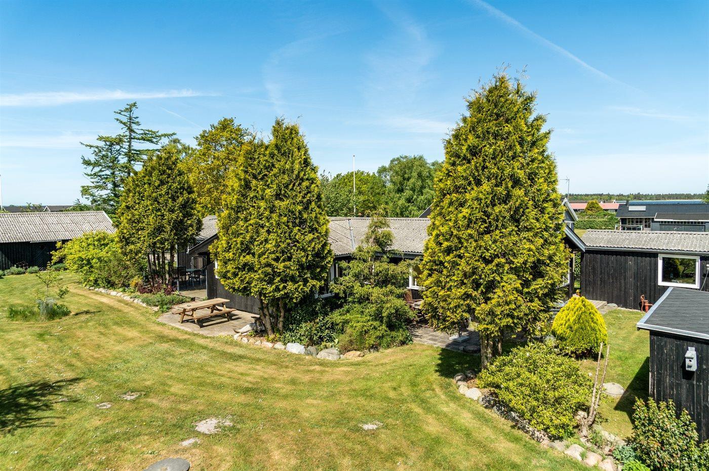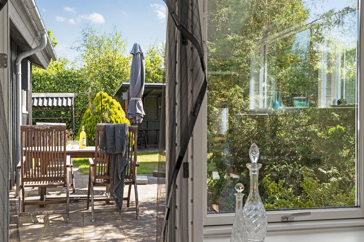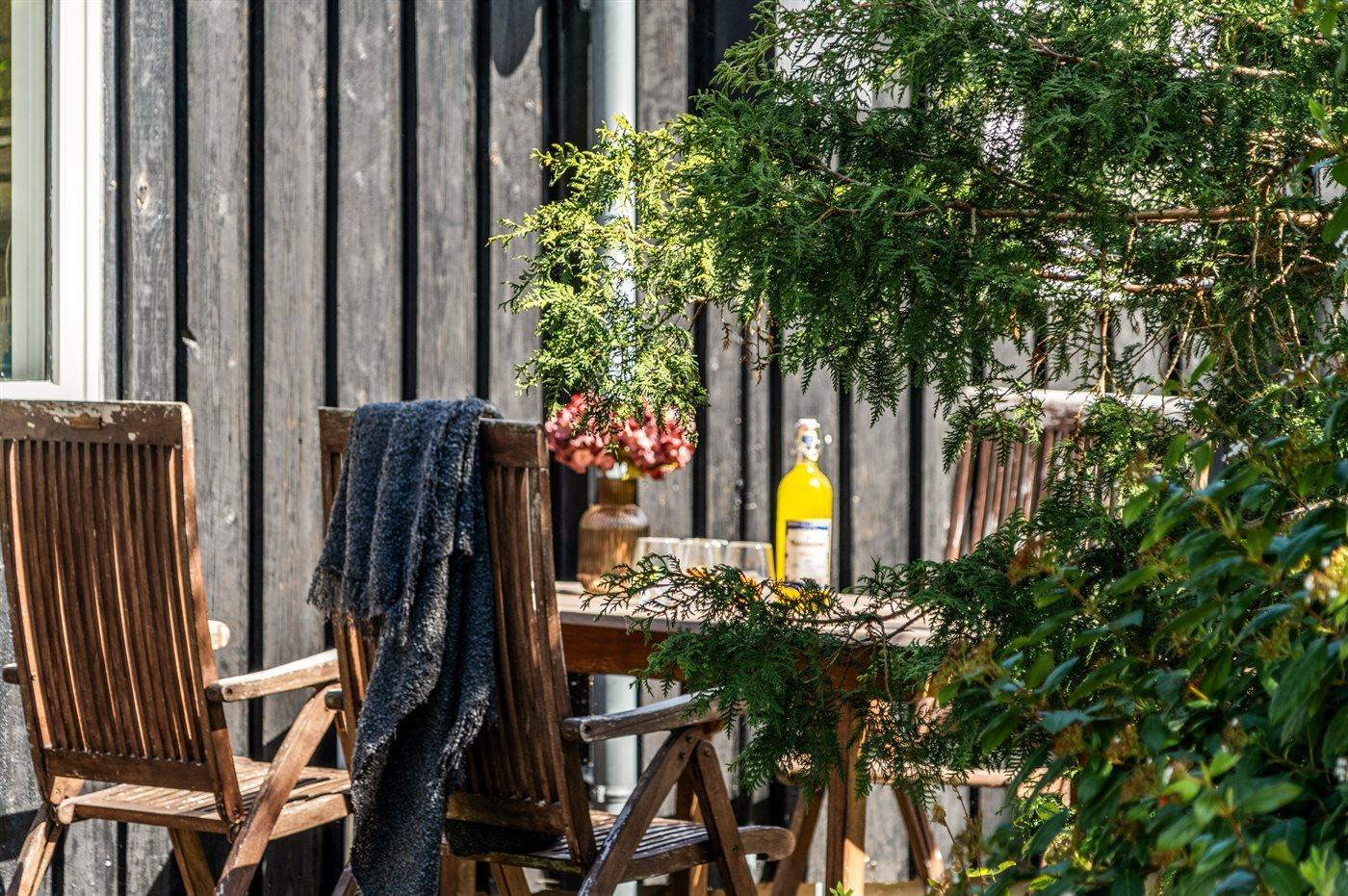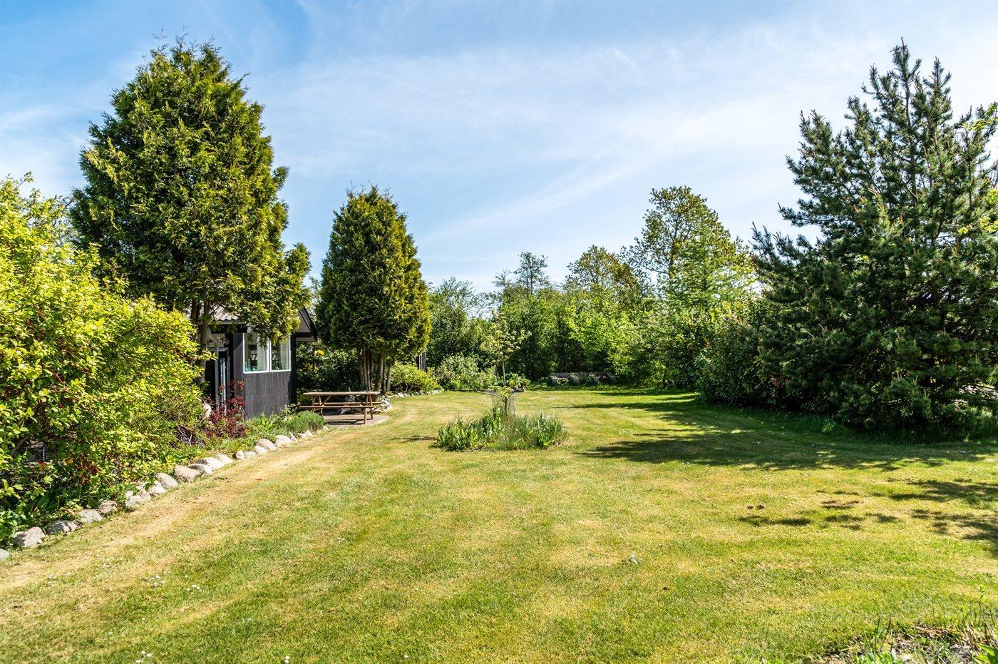 Sommerhuset byder på en skøn terrasse med grill, hvor I kan tilberede lækre måltider og nyde de lange sommeraftener. Den dejlige have med en stor græsplæne inviterer til leg og afslapning for både børn og voksne.