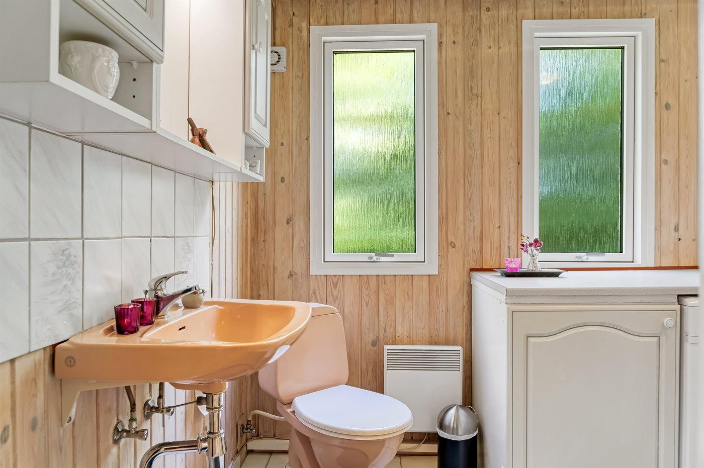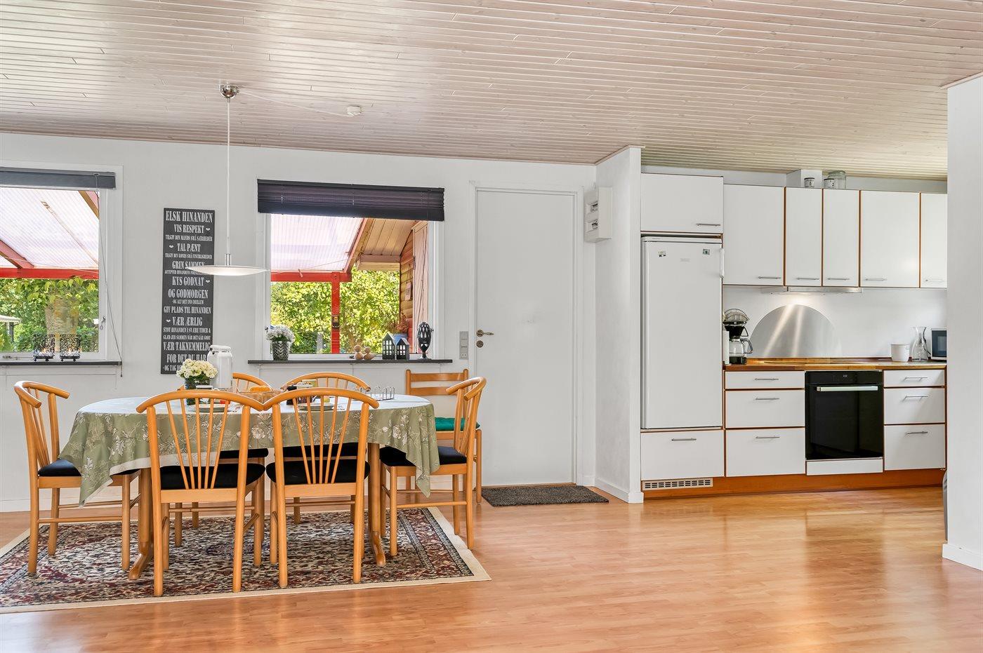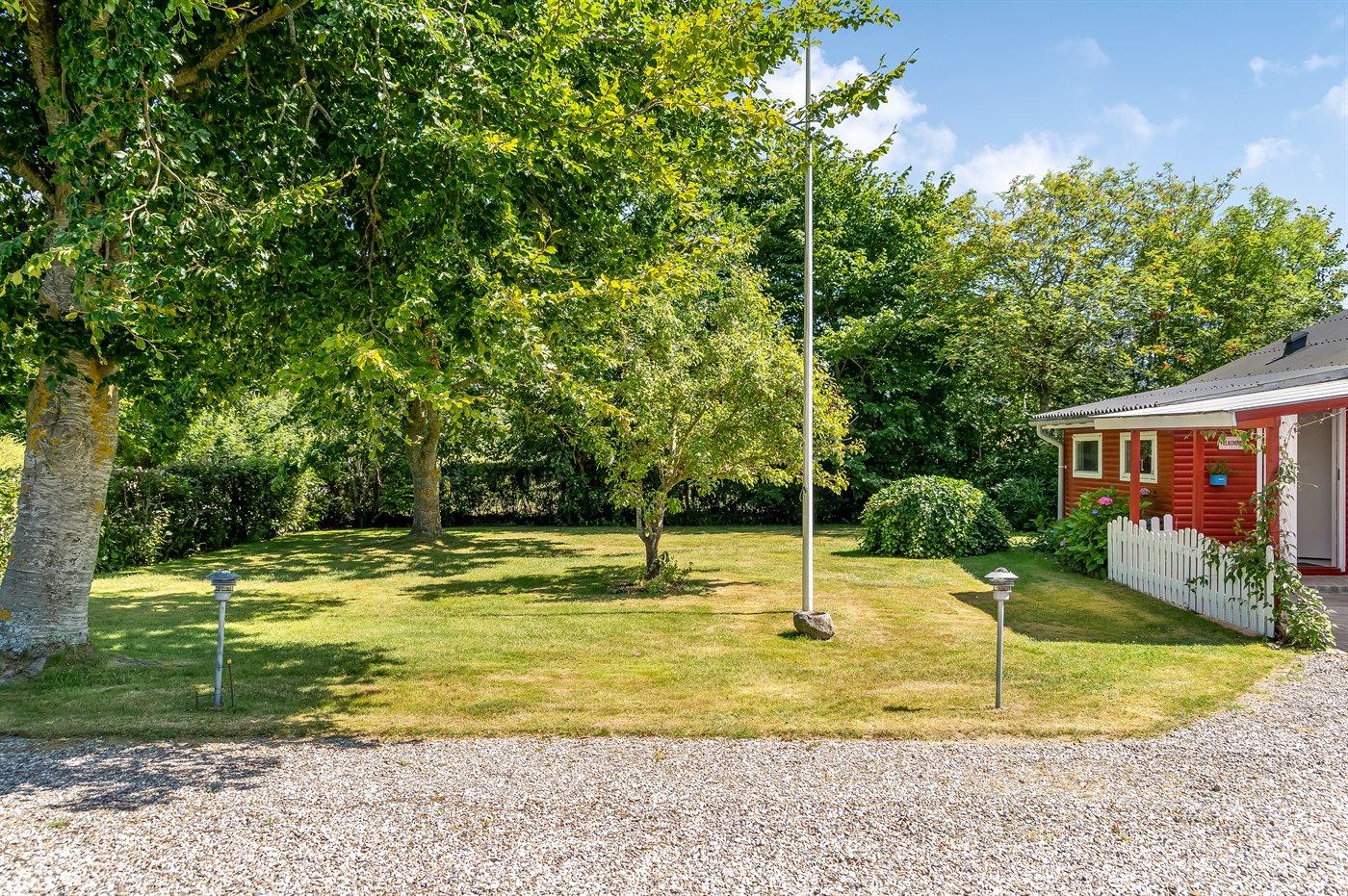 Ferieboligen er beliggende på en 1230 m² stor havegrund. Grunden er indhegnet. Der er 1300 m til havet. Der er 500 m til fjorden. Nærmeste forretning er beliggende i en afstand af 300 m. Der er en golfbane i en afstand af 3100 m. Til ferieboligen hører åbent terrasseareal. Desuden er der overdækket terrasse. Trampolin. Grill til rådighed. Parkering ved ferieboligen.