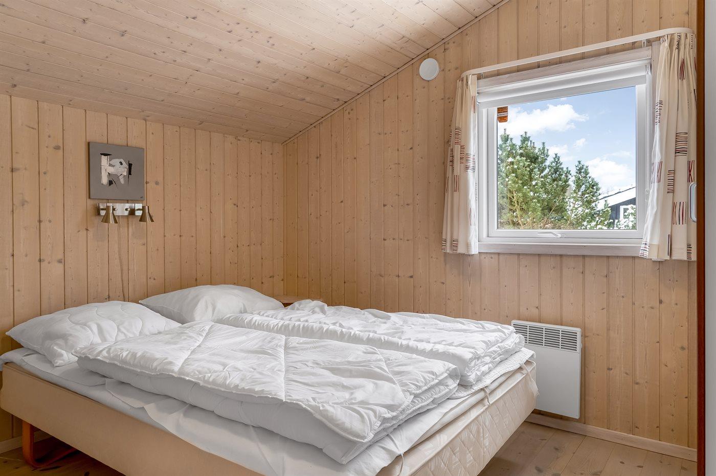 Der er i alt 3 soveværelser. Sovepladserne fordeler sig på: 4 sovepladser i dobbeltsenge. 2 sovepladser i køjeseng. Derudover er der 1 stk. barneseng.