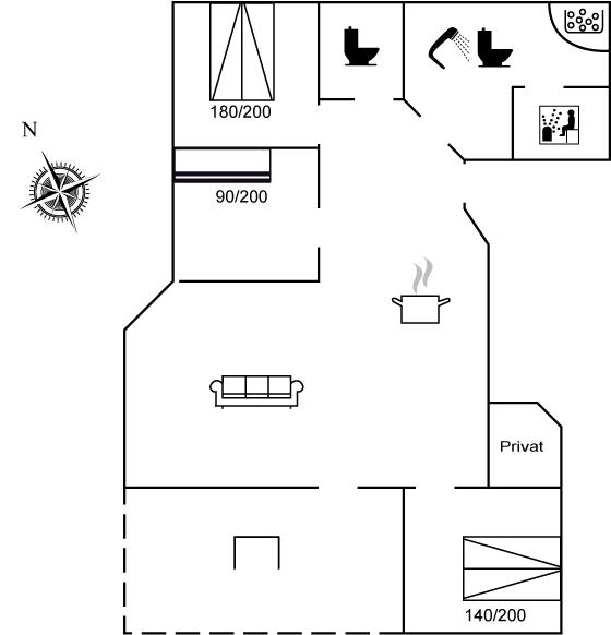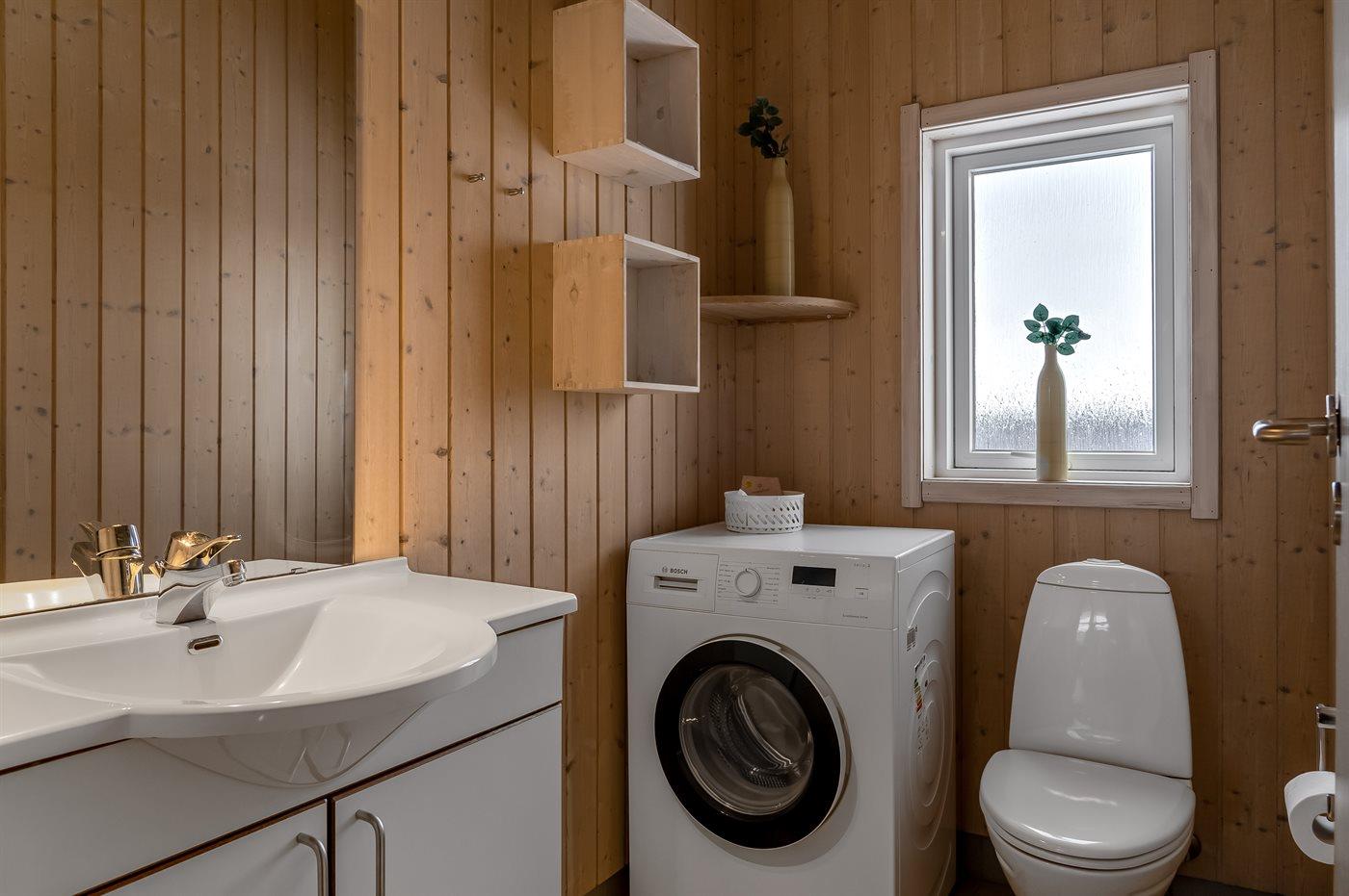 Der er 1 badeværelse med bruseniche og 2 toiletter, heraf 1 gæstetoilet. Der er gulvvarme på 1 badeværelse. Der er gulvvarme på gæstetoilettet. I saunaen er der mulighed for afslapning.