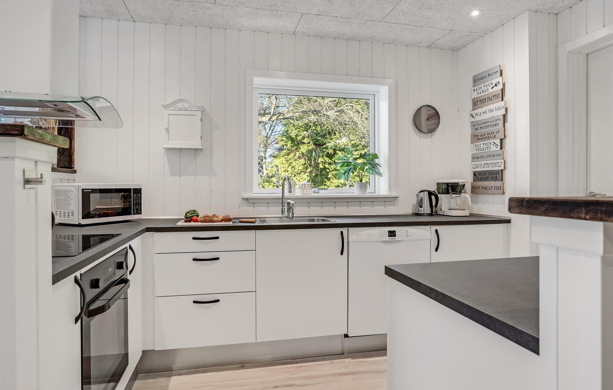 På en rolig beliggenhed tæt på Limfjorden og Kattegat finder I dette smukke feriehus med plads til den store familie. Det komfortabelt indrettede interiør giver et indbydende indtryk og indbyder til at føle sig godt tilpas. Tilbring hyggelige feriedage i de lyse værelser med jeres kære, og tilbered lækre måltider sammen i det store køkken. I kan underholde jer selv om aftenen med brætspil med de bløde lyde fra brændeovnen i baggrunden.