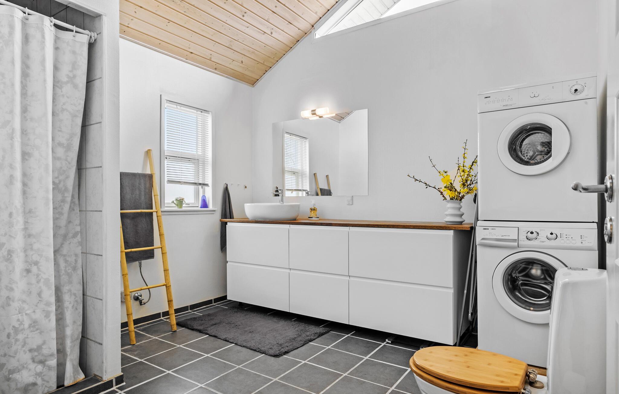 Velkommen til dette indbydende træhus, der ligger tæt på både Limfjorden og Kattegat og danner de perfekte rammer for årets familieferie. Huset er flot indrettet med højt til loftet, gode møbler og et åbent opholdsrum, hvor køkken og stue er i ét rum. Måske børnene skal bygge hule på hemsen? Familiens kokke kan kræse om madlavningen i køkkenet og samtidig følge med i samtalerne ved spisebordet eller i sofaen. Nyd jeres måltider med udsigt til omgivelserne, inden I trækker over i stuen og afslutter aftenen med brætspil eller en god film på tv'et.