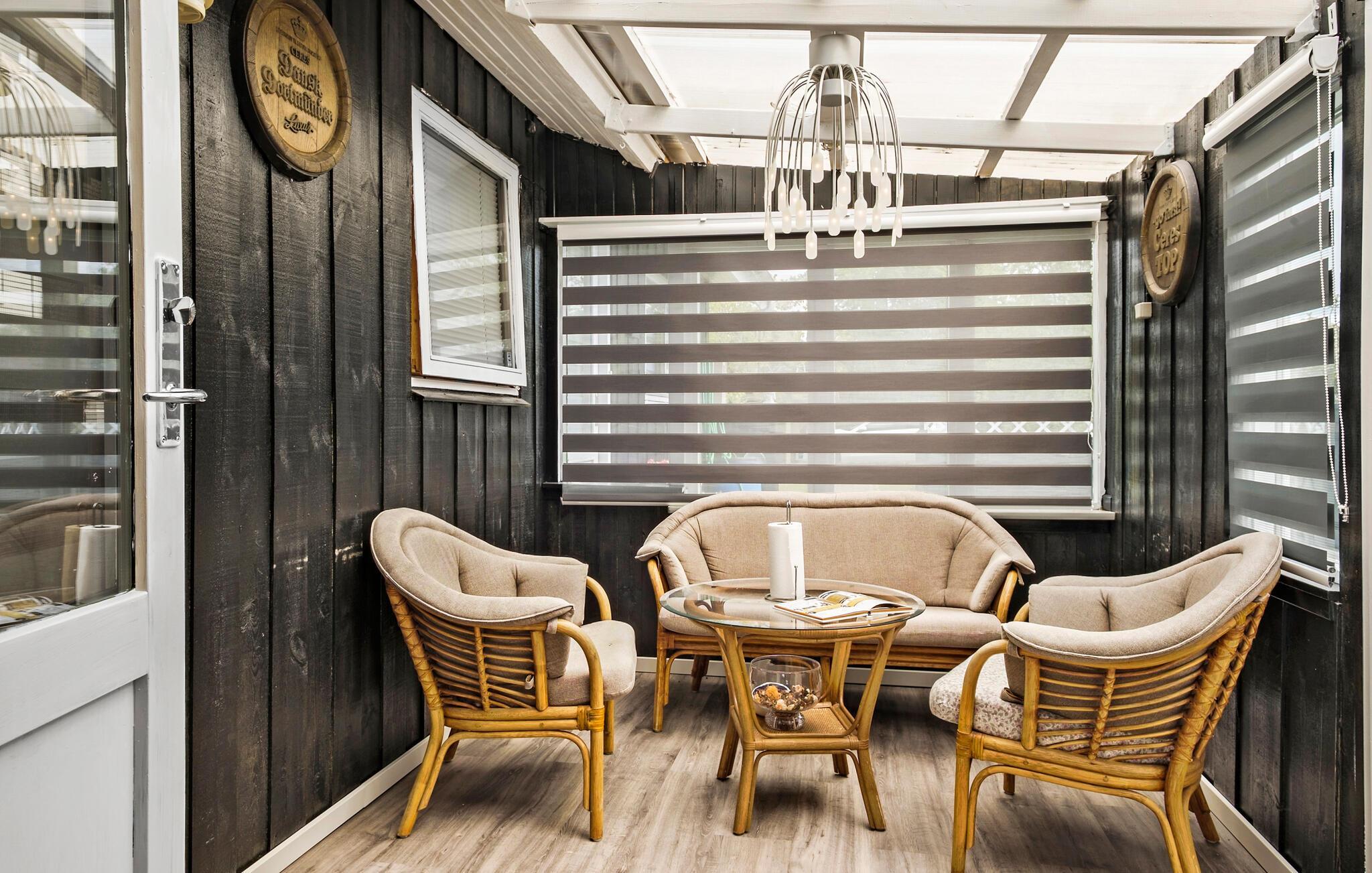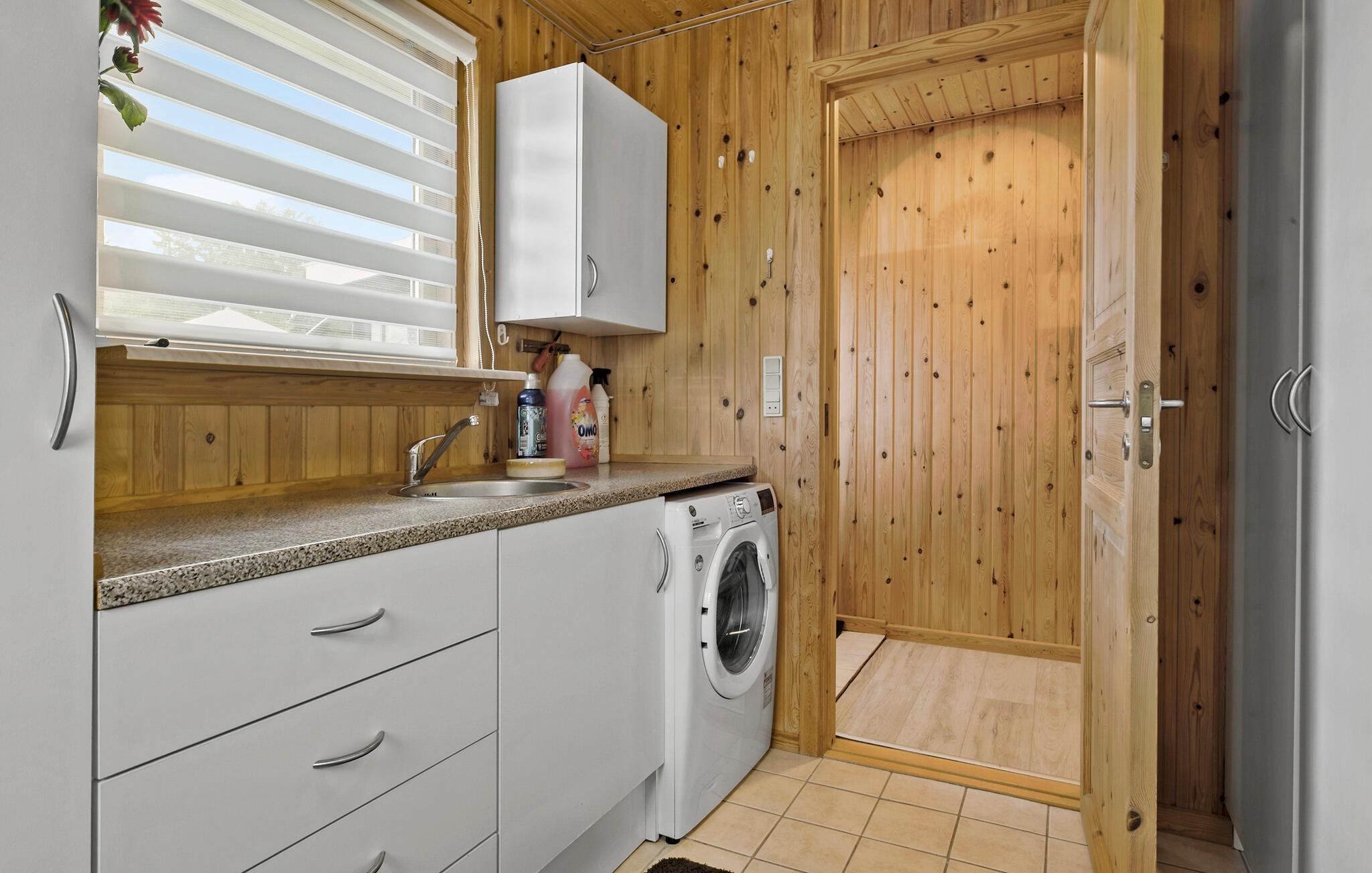 Velkommen til dette rummelige sommerhus, hvor stemningsfuld belysning og hyggelige møbler skaber en hyggelig atmosfære. Tænd brændeovnen og lyt til den knitrende ild, mens I nyder hyggelige måltider. Brug spisebordet til sjove spilleaftener eller sæt jer til rette til en god film med hele familien.