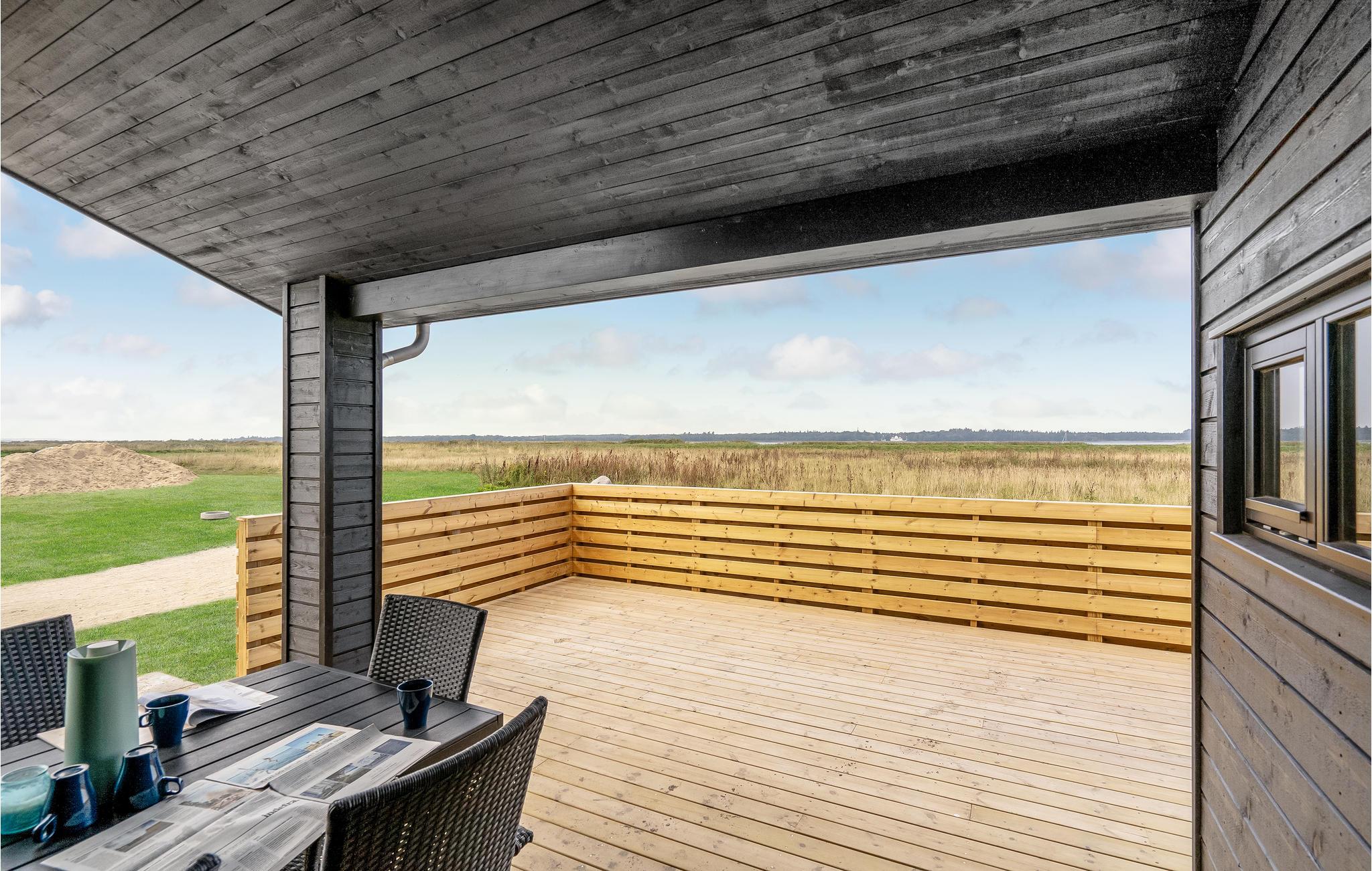 Nyd en ferie i dette moderne sommerhus med panoramisk udsigt over vandet og dejlige udendørsfaciliteter.