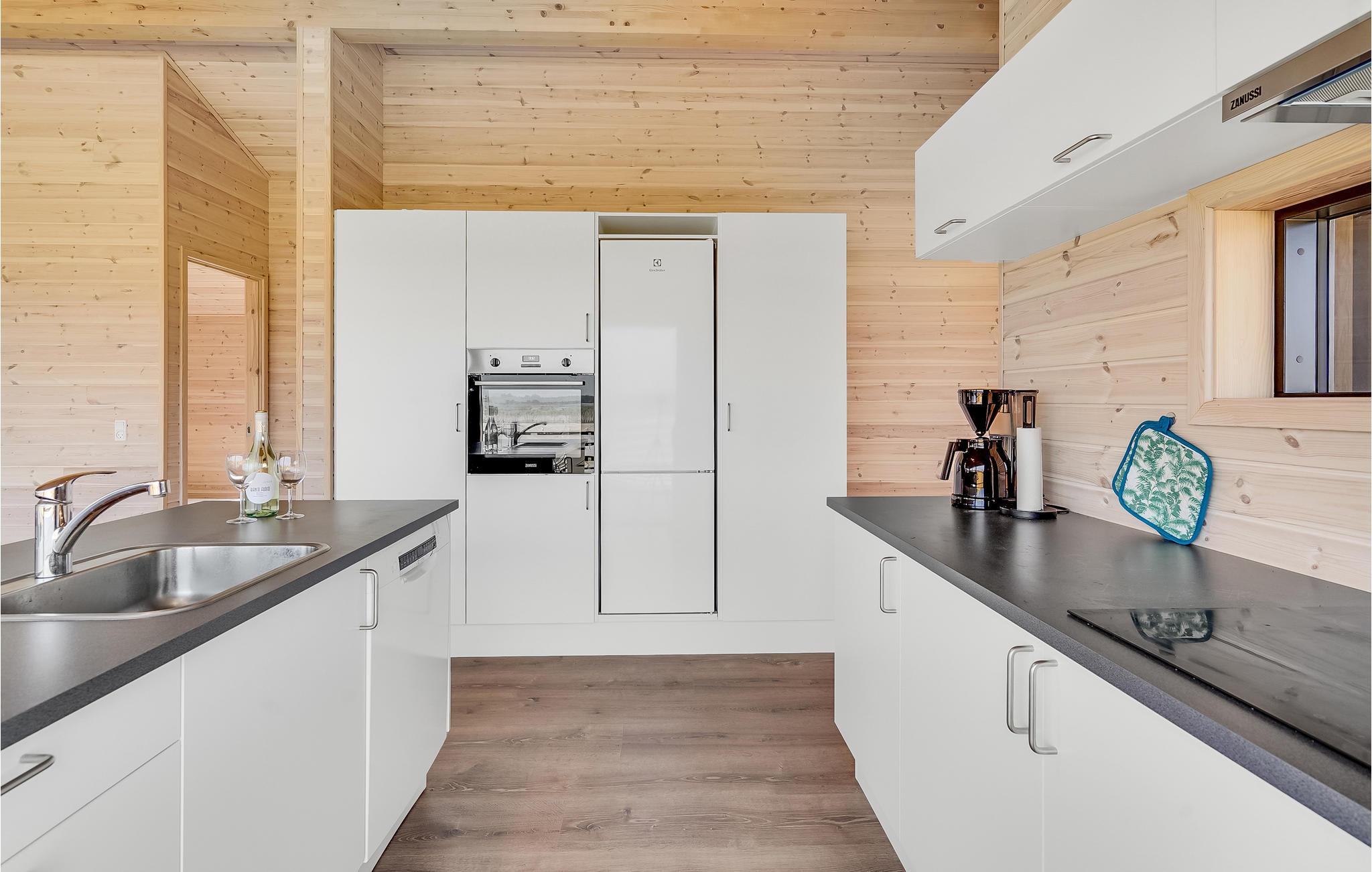 Velkommen til dette indbydende sommerhus, som er indrettet og udstyret med flotte, stilrene faciliteter. Husets hjerte er den lyse stue med åbent køkken, dejlig spiseplads og sofahjørne, hvor I kan tilberede måltider sammen, slappe af på sofaen og nyde hinandens selskab. Fra spisebordet og sofaen har I en dejlig, bred udsigt over landskabet, som ikke er afskærmet.