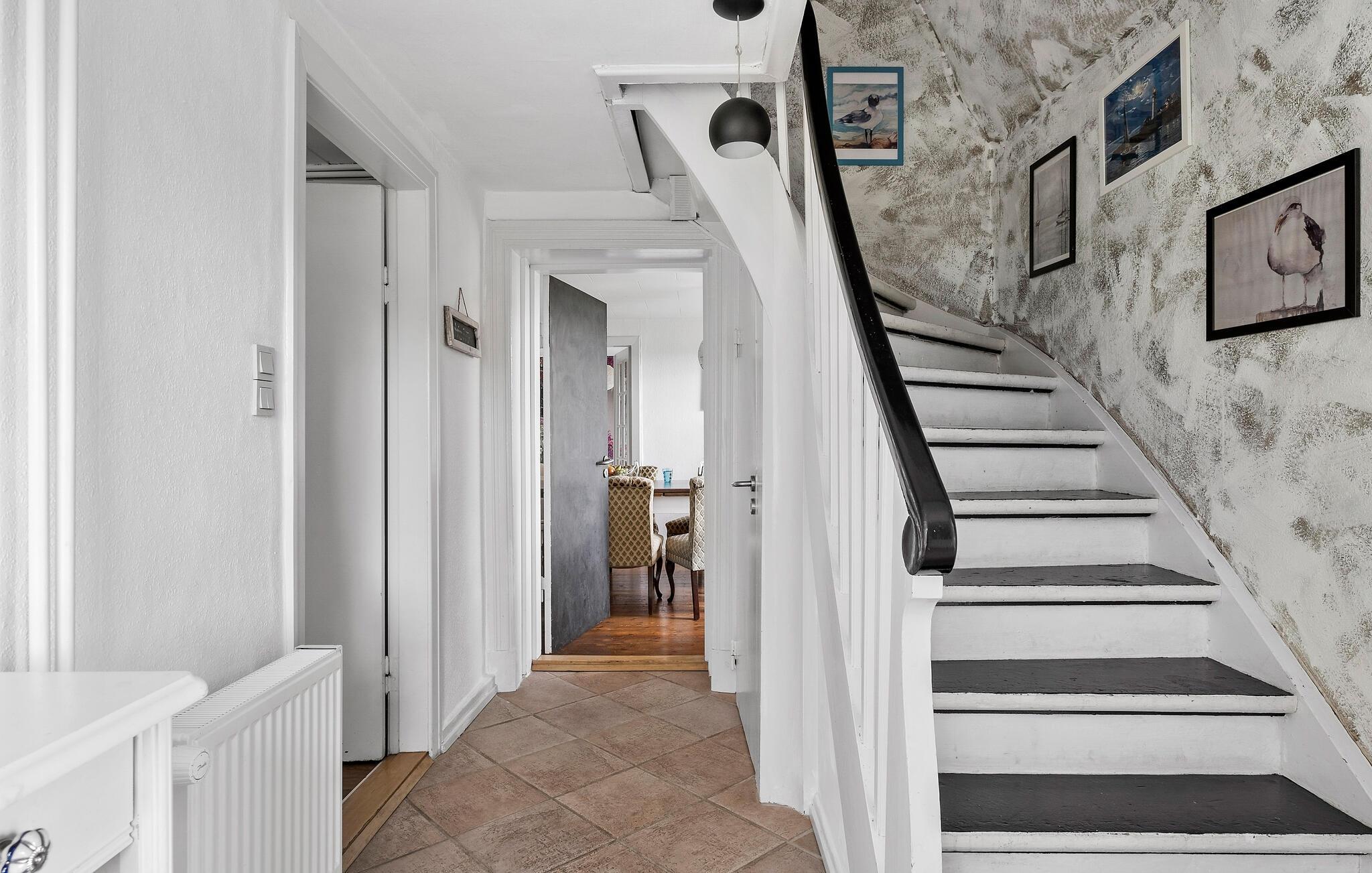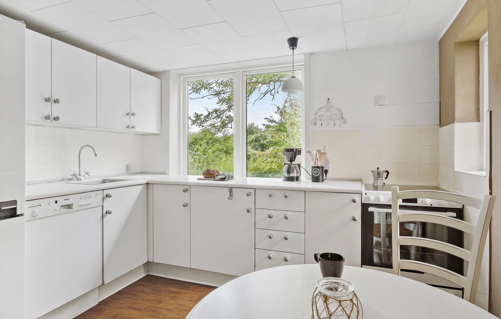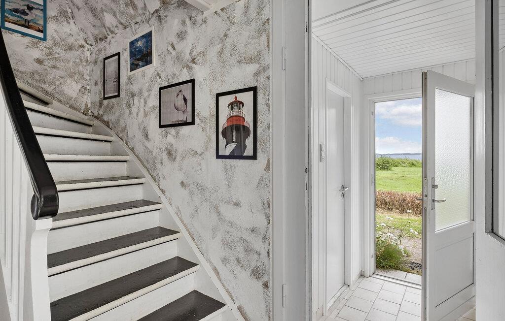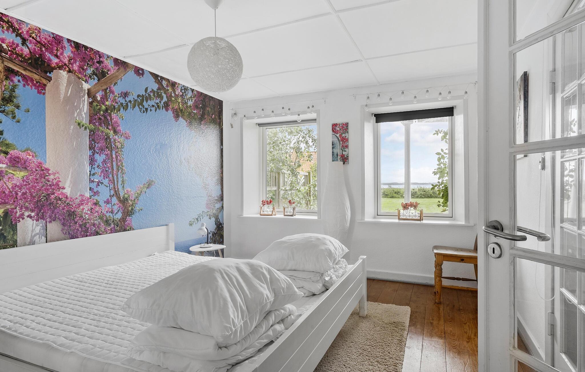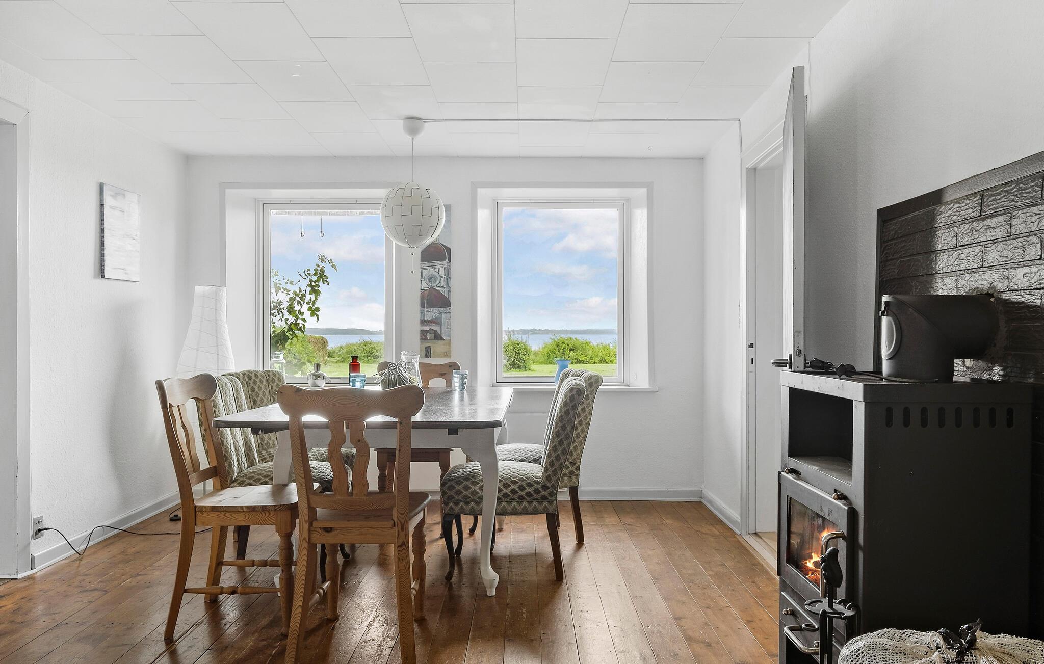 Denne bolig ligger i Egeskov i et roligt hus, ideel til en afslappende pause. Ferielejligheden strækker sig over stueetagen og første sal, mens der er endnu en lejlighed på øverste etage. Det stilrene interiør, præget af harmoniske farver, motivtapeter og smagfulde dekorationer, skaber en hyggelig atmosfære. På køligere dage giver pejsen i opholdsstuen hyggelig varme, mens I nyder udsigten til vandet.