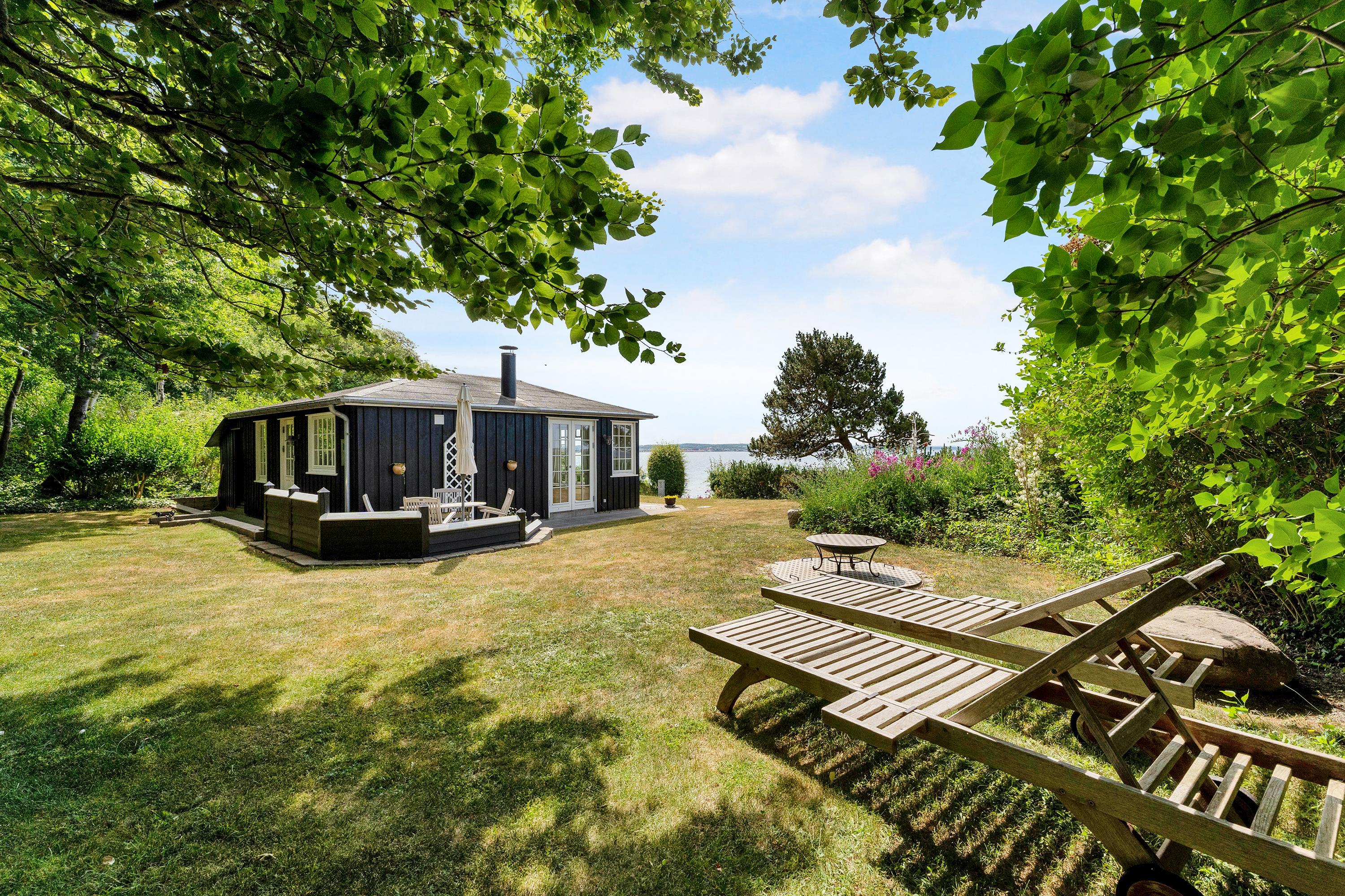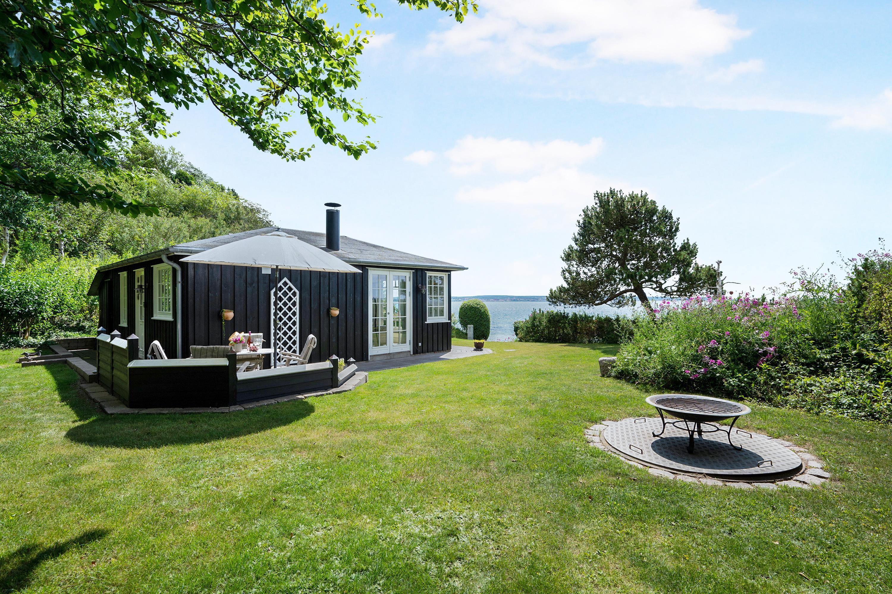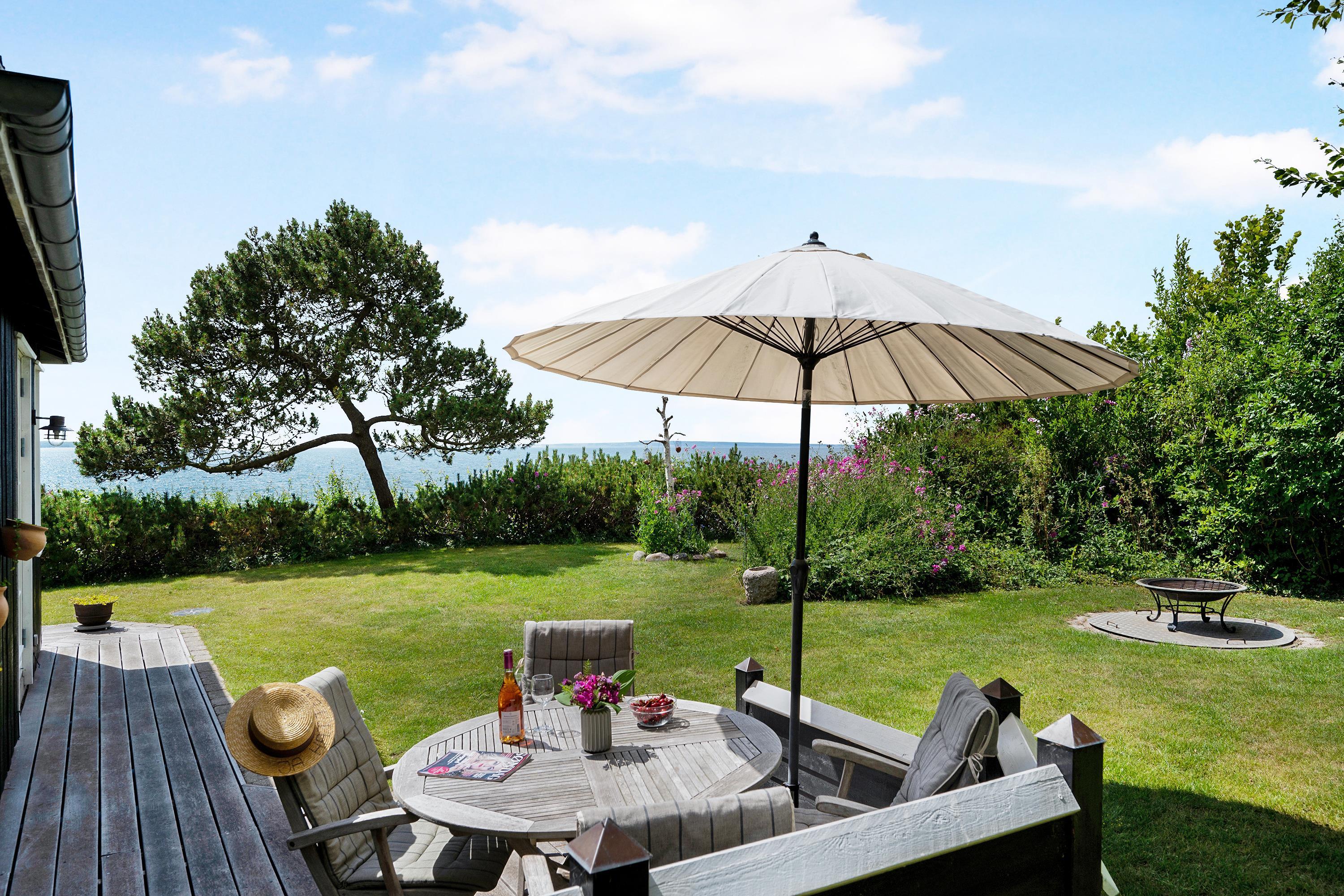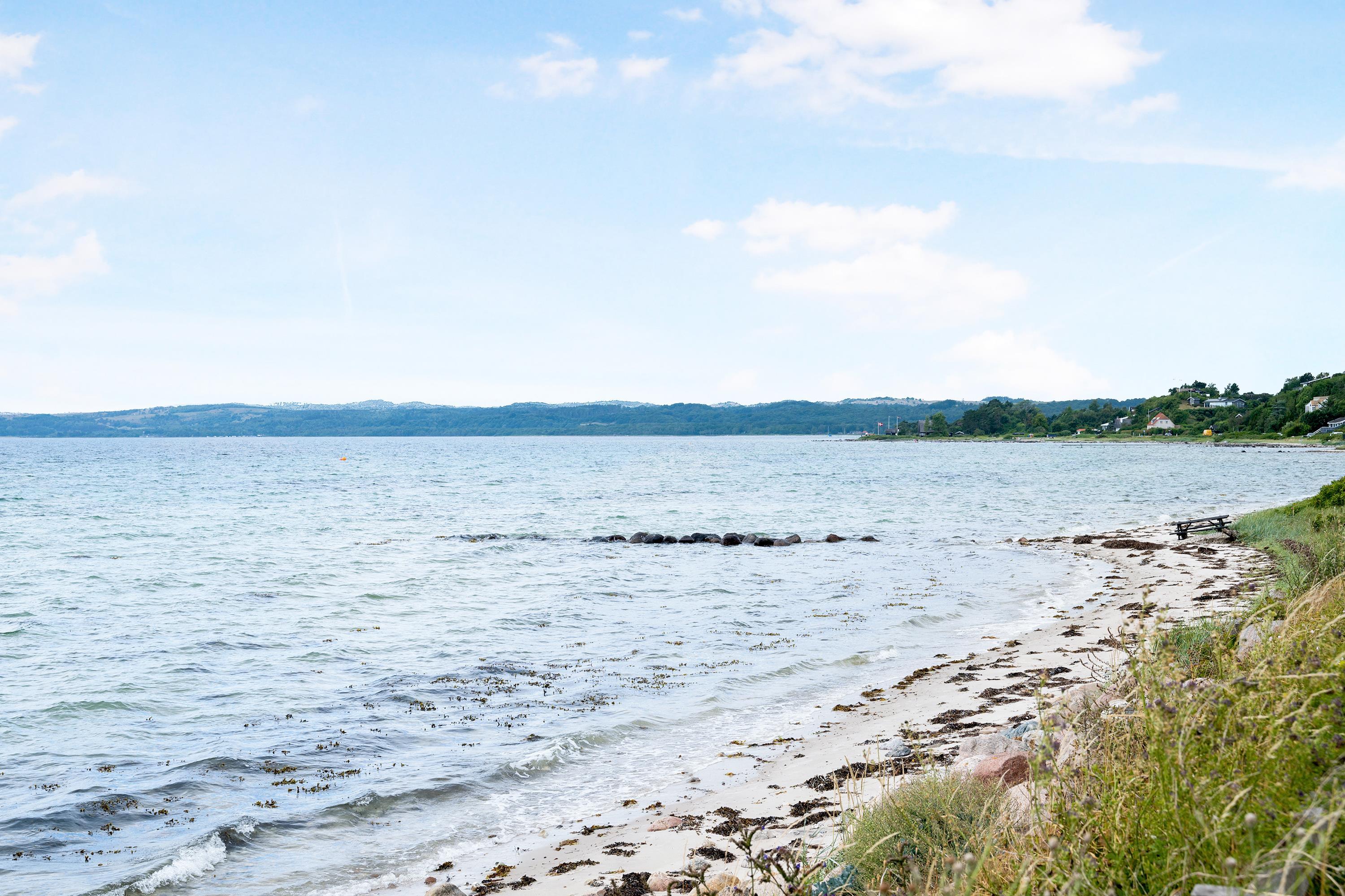 Med en beliggenhed kun 20 m fra stranden, finder man dette helt fantastiske og hyggelige feriehus, højt beliggende med panoramaudsigt til Mols Bjerge, Tunø og Samsø. Huset er bygget i 1955 og er totalrenoveret overalt samtidig med, at man har bibeholdt den gamle romantiske stil. Huset indeholder en rigtig hyggelig og velmøbleret stue, brændeovn, TV med danske (inkl. TV2) og tyske kanaler. Her er desuden DVD-afspiller og stereoanlæg med CD-afspiller. Fra stuen er der udgang til en af de skønne terrasser med gode havemøbler. I forbindelse med stuen finder man den dejlige køkkenafdeling med b.la. opvaskemaskine. Skønt badeværelse med bruseniche. Husets sovepladser finder man i to værelser, heraf et værelse med en dobbeltseng og et værelse med to enkelt-senge. Uanset hvor man befinder sig i stue eller køkken vil man opleve den smukkeste havudsigt fra det store panoramavindue i stuen. Huset er beliggende på en særdeles velplejet grund med flere dejlige terrasser og hyggekroge. På grunden er der også et hyggeligt bålsted, så man en lun sommeraften kan hygge sig med snobrød og se solen gå ned over vigen og Mols Bjerge.