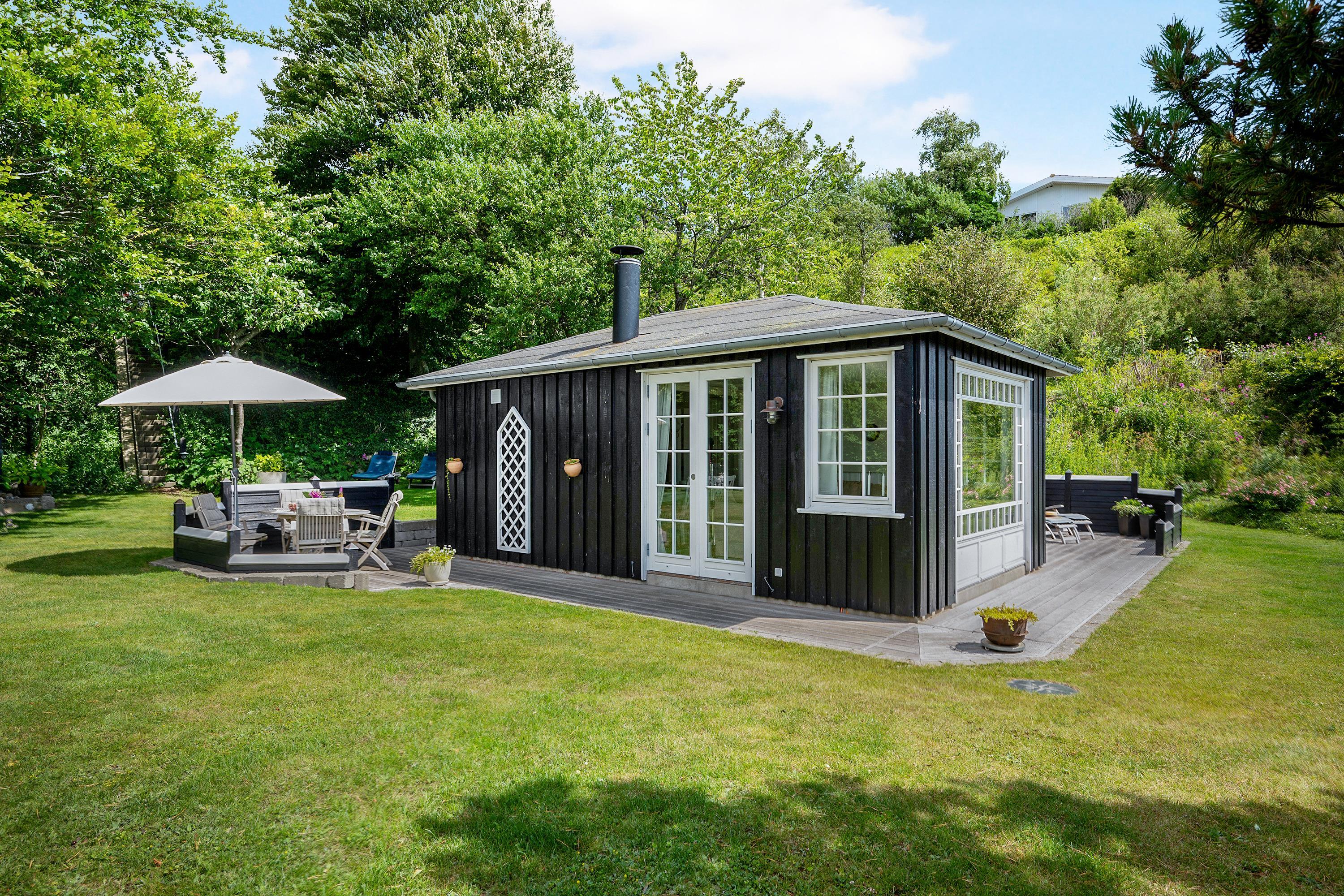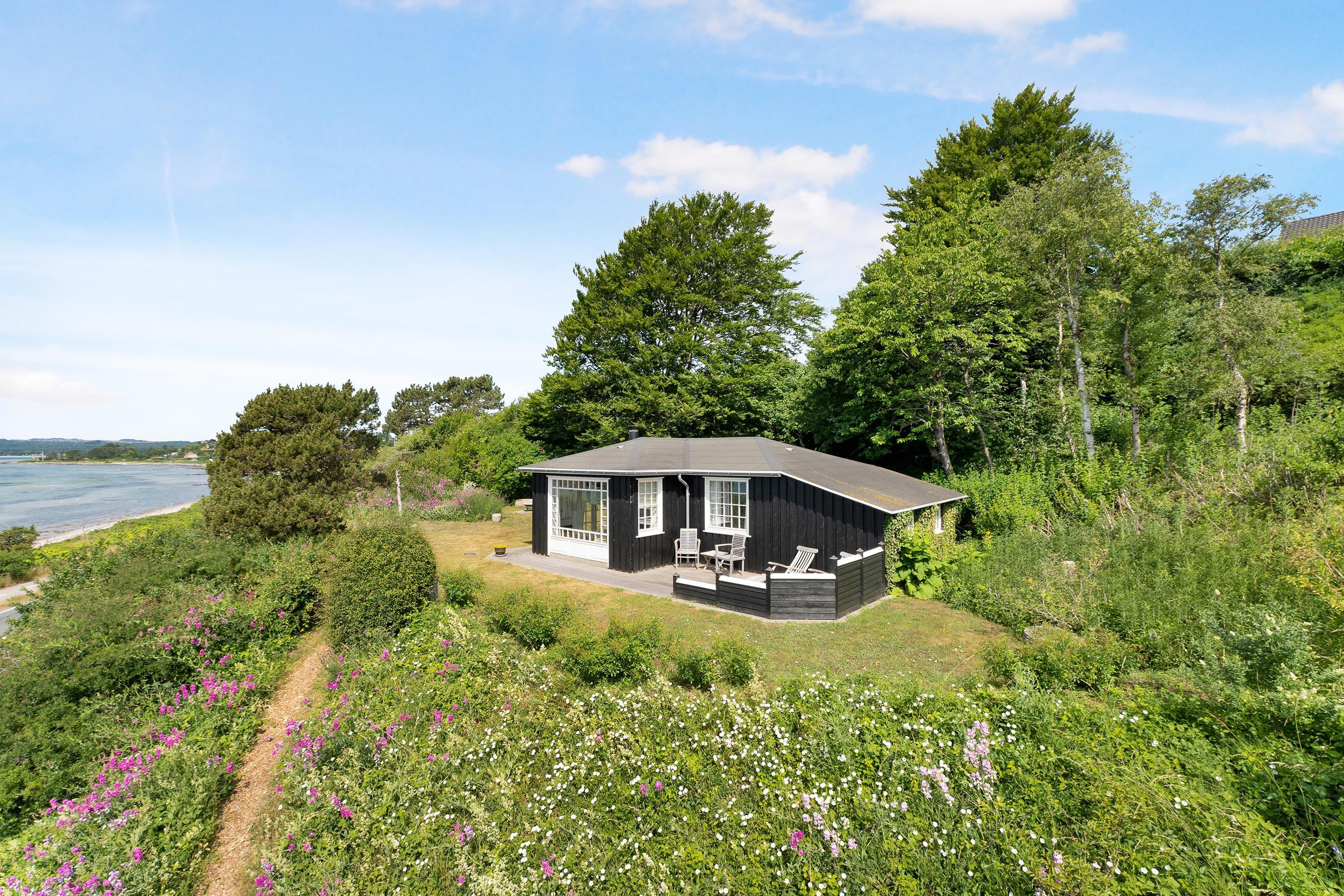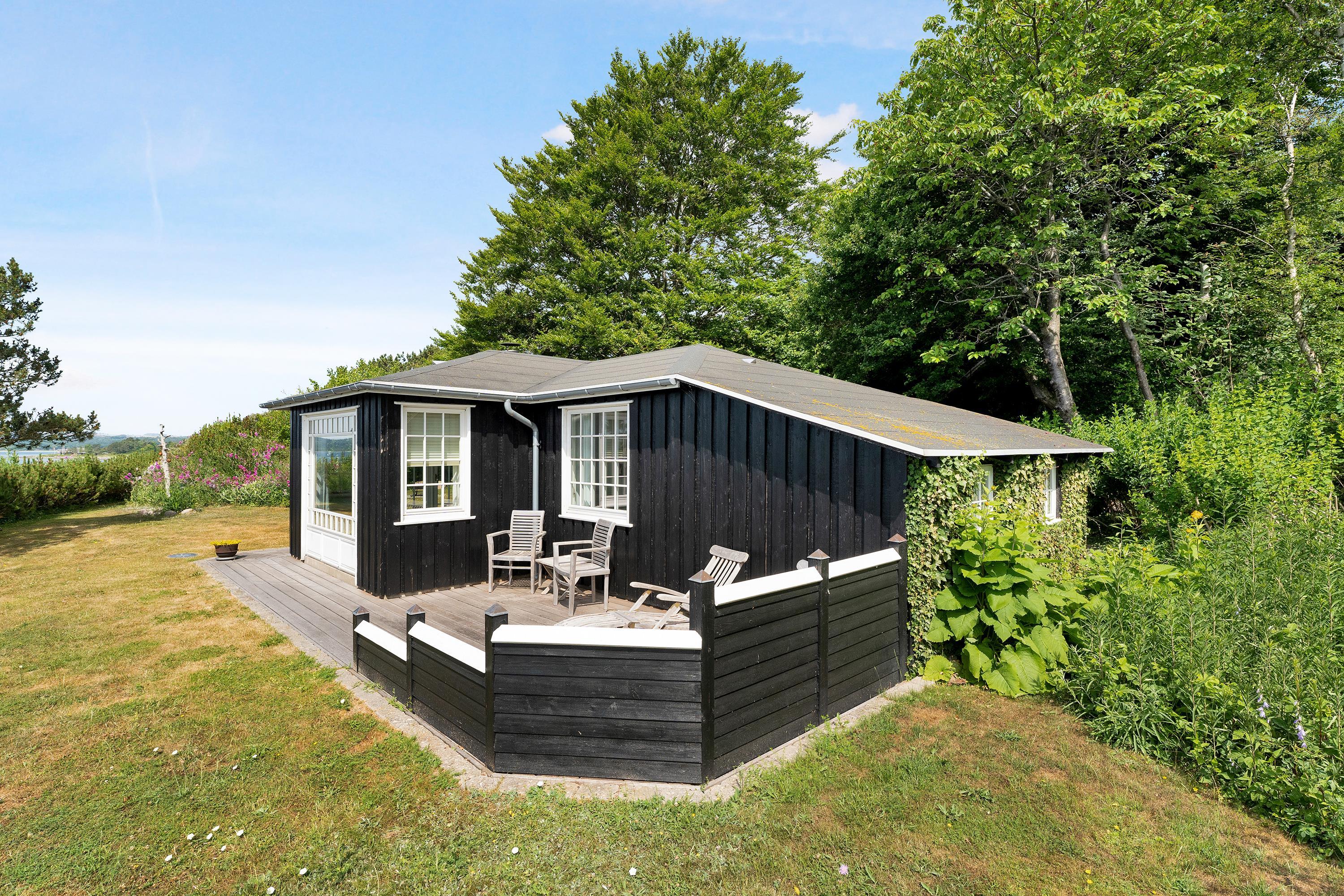 Med en beliggenhed kun 20 m fra stranden, finder man dette helt fantastiske og hyggelige feriehus, højt beliggende med panoramaudsigt til Mols Bjerge, Tunø og Samsø. Huset er bygget i 1955 og er totalrenoveret overalt samtidig med, at man har bibeholdt den gamle romantiske stil. Huset indeholder en rigtig hyggelig og velmøbleret stue, brændeovn, TV med danske (inkl. TV2) og tyske kanaler. Her er desuden DVD-afspiller og stereoanlæg med CD-afspiller. Fra stuen er der udgang til en af de skønne terrasser med gode havemøbler. I forbindelse med stuen finder man den dejlige køkkenafdeling med b.la. opvaskemaskine. Skønt badeværelse med bruseniche. Husets sovepladser finder man i to værelser, heraf et værelse med en dobbeltseng og et værelse med to enkelt-senge. Uanset hvor man befinder sig i stue eller køkken vil man opleve den smukkeste havudsigt fra det store panoramavindue i stuen. Huset er beliggende på en særdeles velplejet grund med flere dejlige terrasser og hyggekroge. På grunden er der også et hyggeligt bålsted, så man en lun sommeraften kan hygge sig med snobrød og se solen gå ned over vigen og Mols Bjerge.