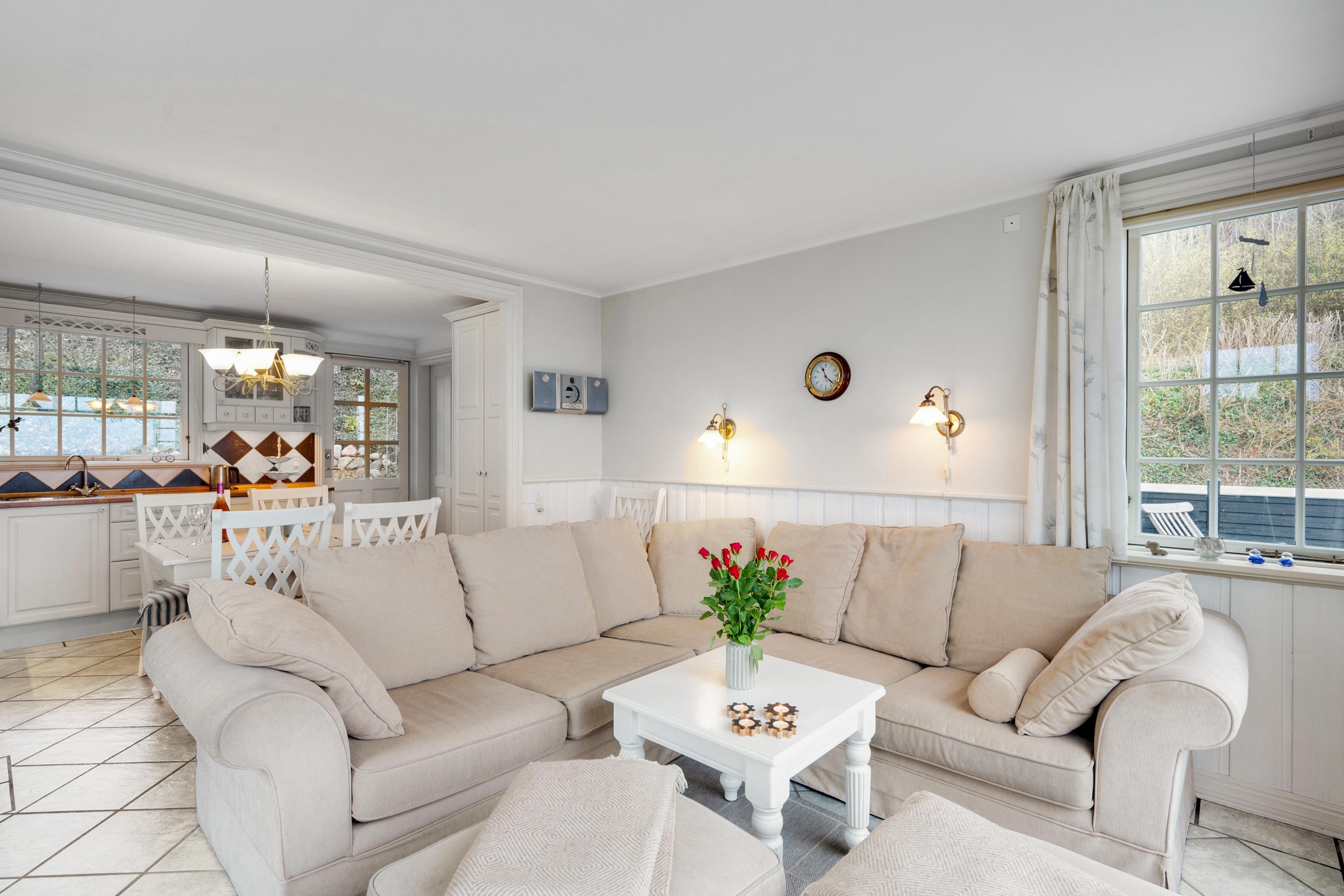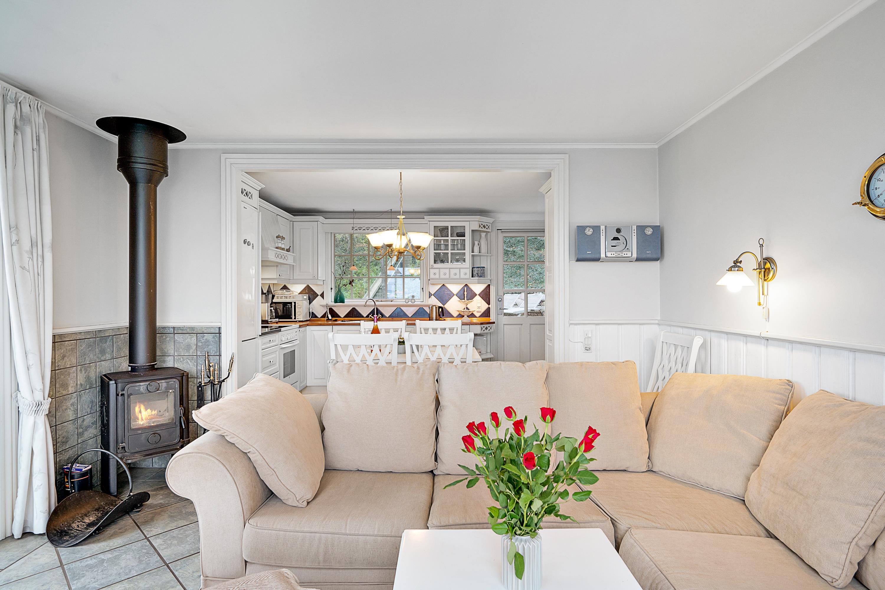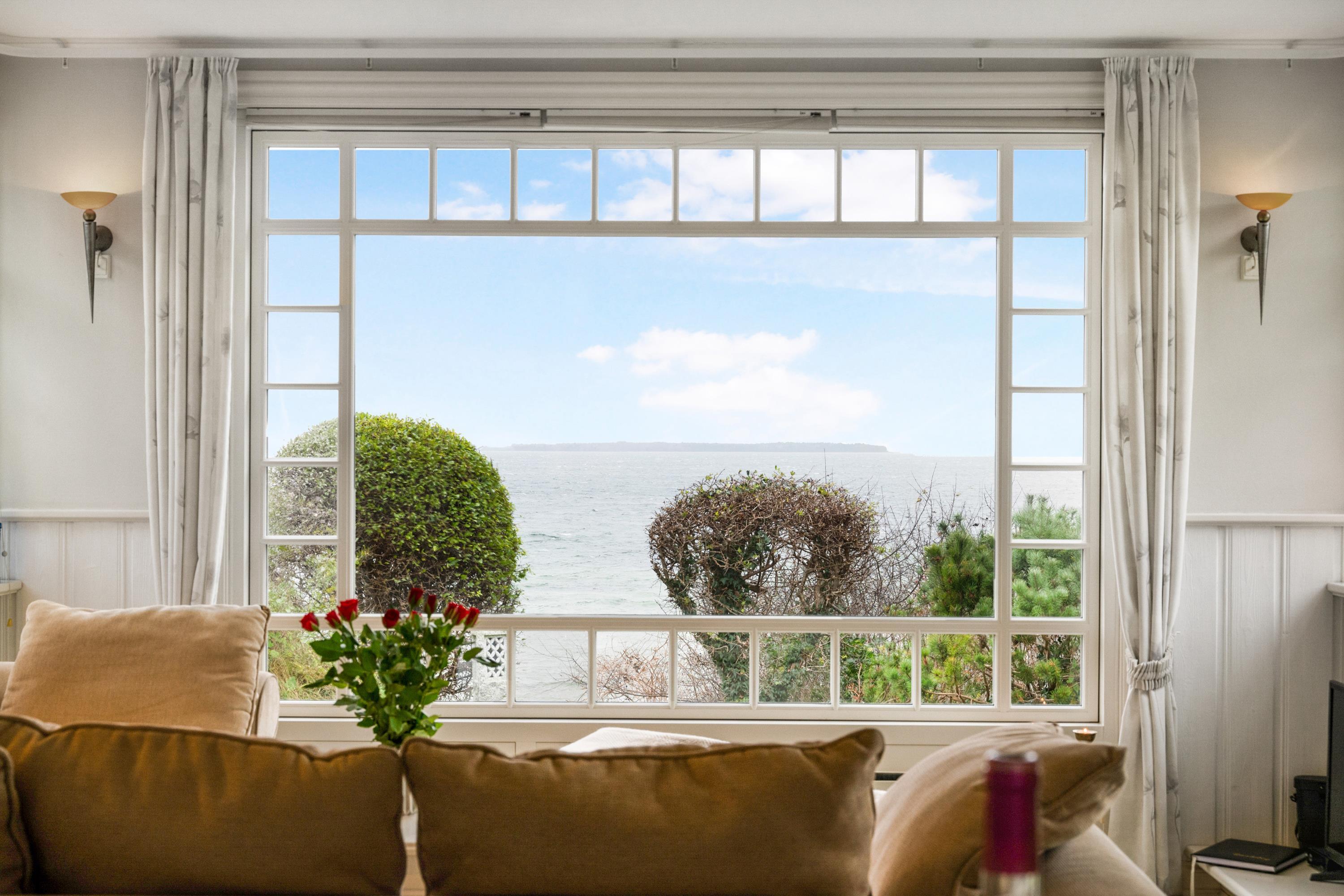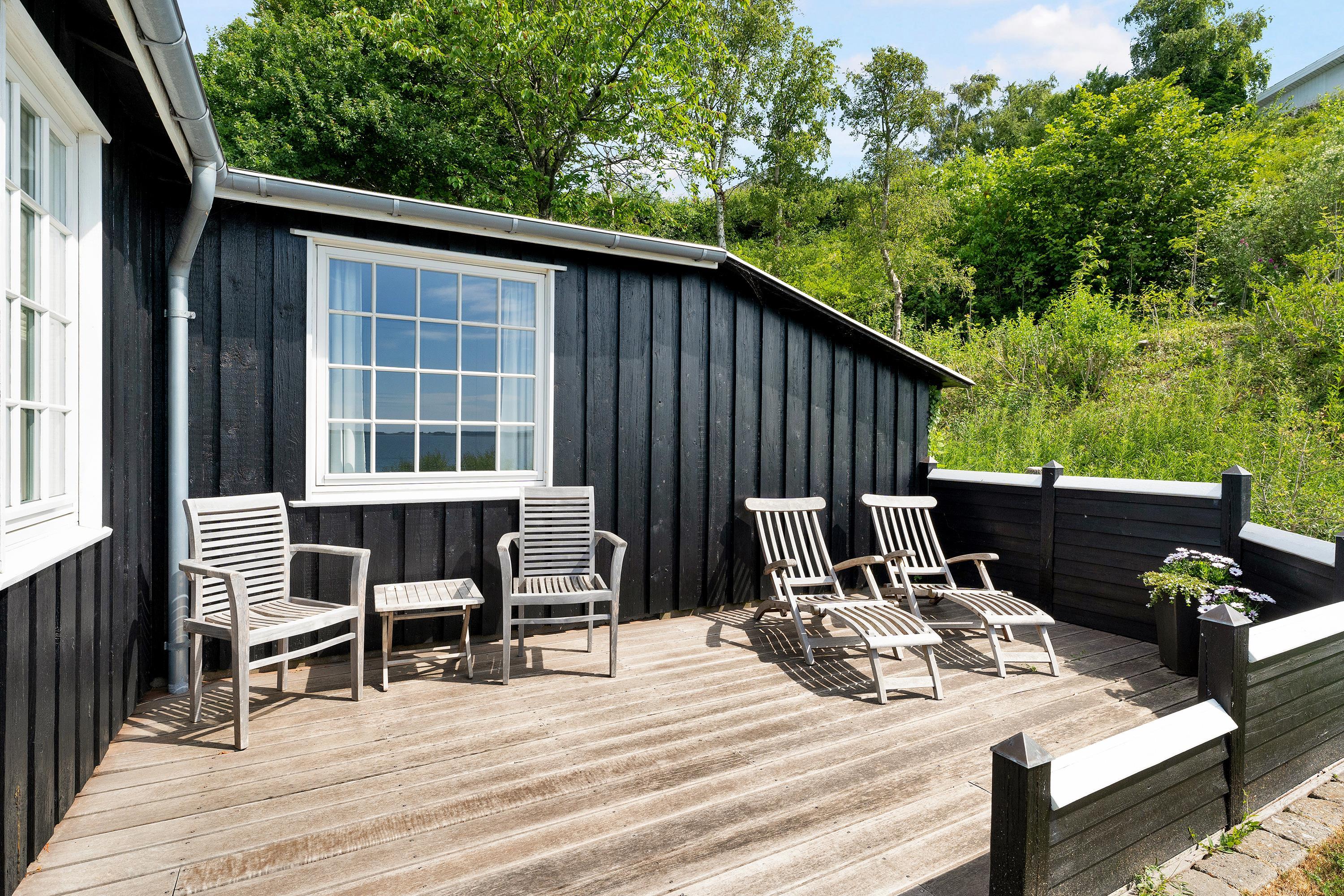 Med en beliggenhed kun 20 m fra stranden, finder man dette helt fantastiske og hyggelige feriehus, højt beliggende med panoramaudsigt til Mols Bjerge, Tunø og Samsø. Huset er bygget i 1955 og er totalrenoveret overalt samtidig med, at man har bibeholdt den gamle romantiske stil. Huset indeholder en rigtig hyggelig og velmøbleret stue, brændeovn, TV med danske (inkl. TV2) og tyske kanaler. Her er desuden DVD-afspiller og stereoanlæg med CD-afspiller. Fra stuen er der udgang til en af de skønne terrasser med gode havemøbler. I forbindelse med stuen finder man den dejlige køkkenafdeling med b.la. opvaskemaskine. Skønt badeværelse med bruseniche. Husets sovepladser finder man i to værelser, heraf et værelse med en dobbeltseng og et værelse med to enkelt-senge. Uanset hvor man befinder sig i stue eller køkken vil man opleve den smukkeste havudsigt fra det store panoramavindue i stuen. Huset er beliggende på en særdeles velplejet grund med flere dejlige terrasser og hyggekroge. På grunden er der også et hyggeligt bålsted, så man en lun sommeraften kan hygge sig med snobrød og se solen gå ned over vigen og Mols Bjerge.