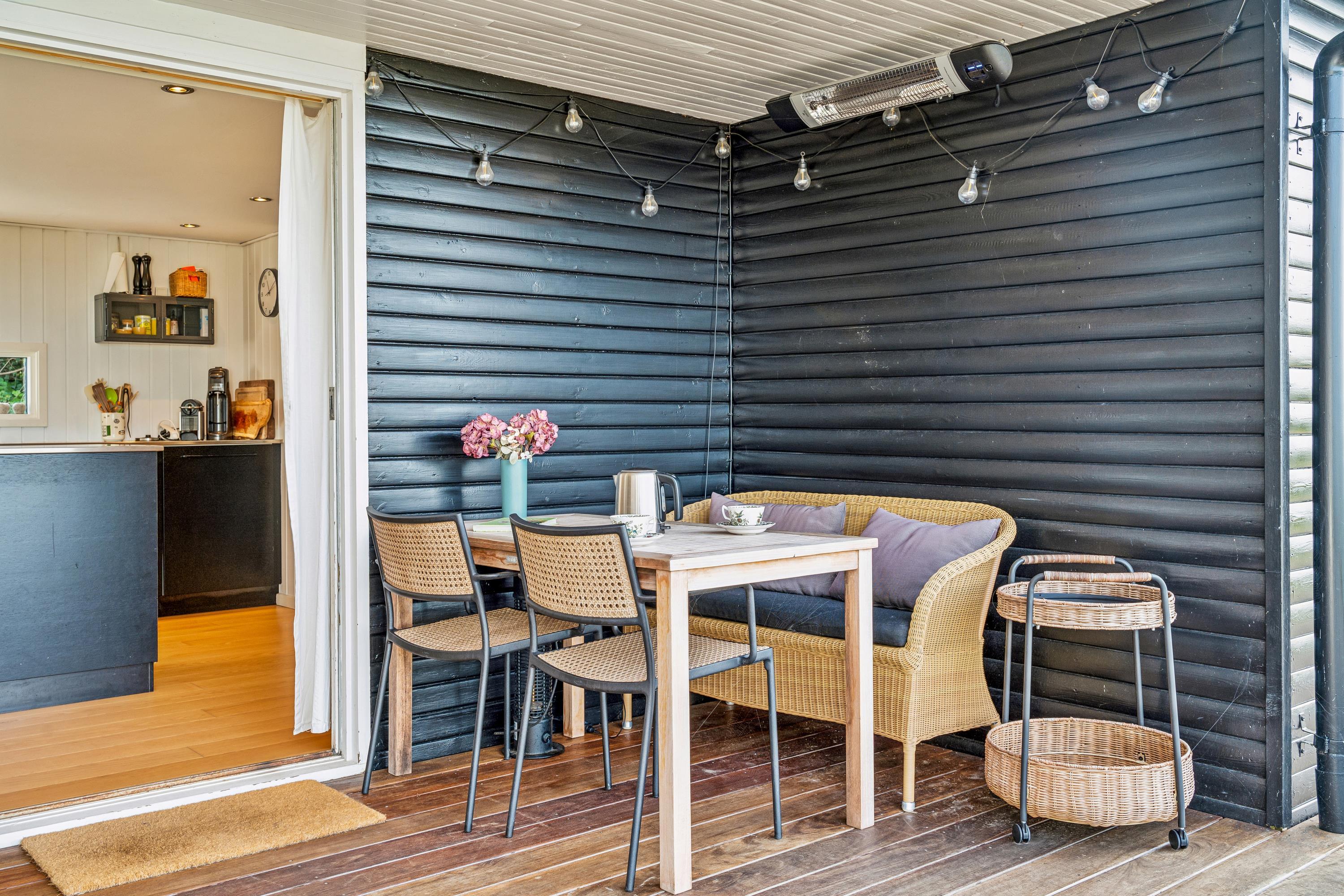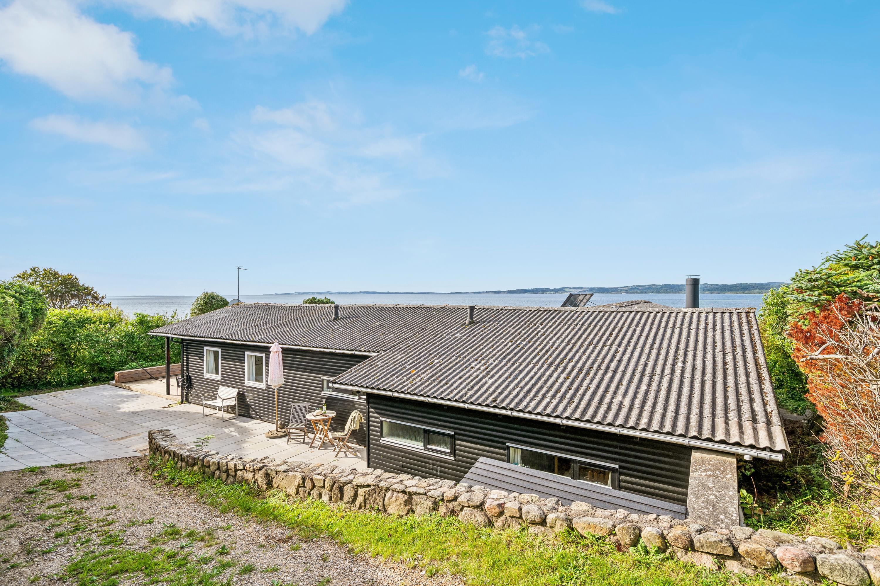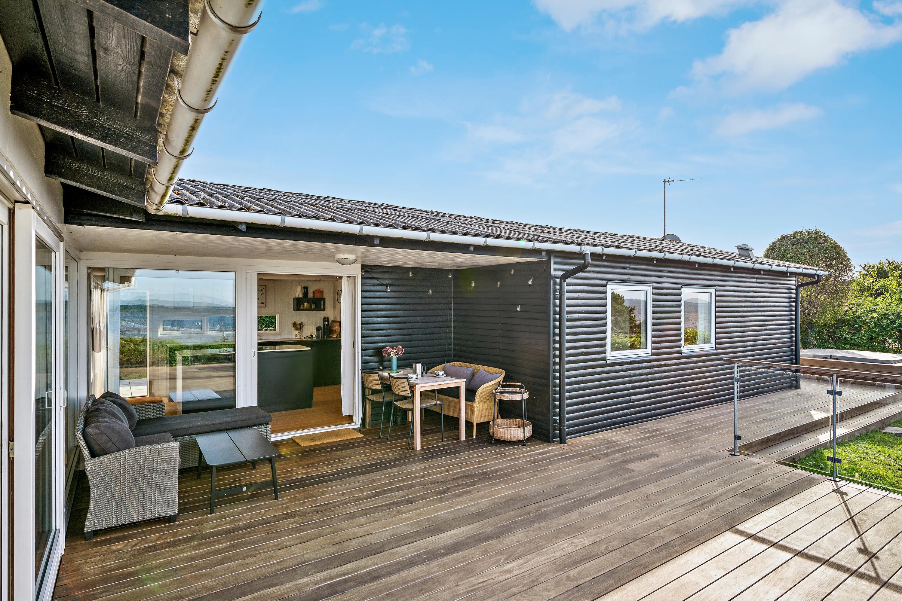På en højt beliggende naturgrund med panoramaudsigt over Ebeltoft Vig ligger dette rummelige og velholdte hus, som fremstår virkelig nyt og lækkert efter en totalrenovering i 2011. Her er kælet for både materialer og detaljer. Huset er omgivet af dejlig afskærmet træterrasse, delvist overdækket, med stor udendørs spa, hvorfra man kan nyde udsigten. Gode havemøbler, liggestole og grill.
