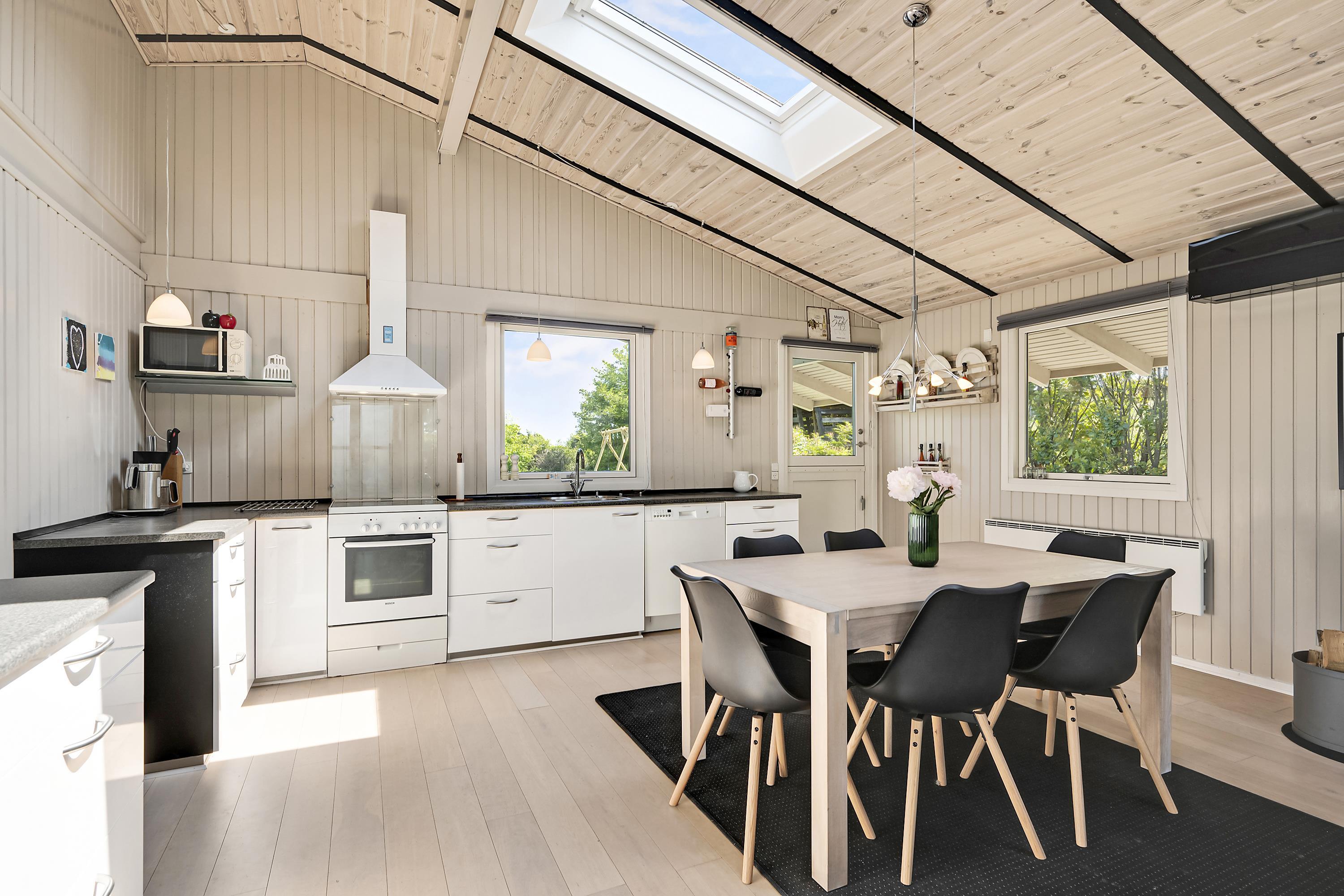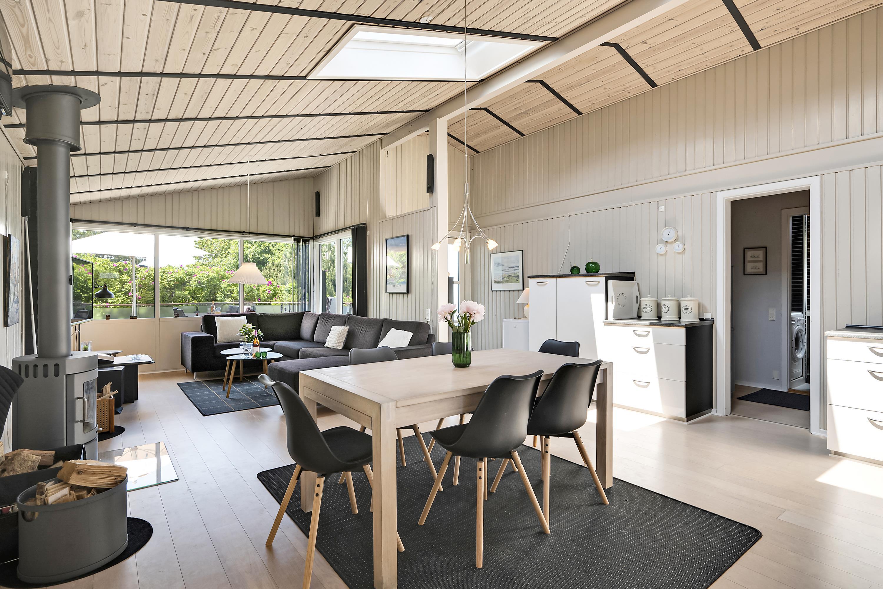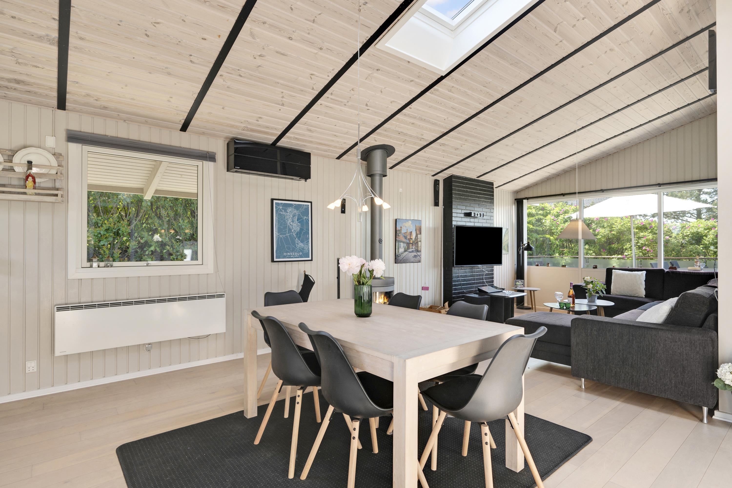 Blot 10 min kørsel fra Ebeltoft, finder man dette flotte og særdeles velholdte hus, beliggende tæt på god strand. Huset indeholder en hyggelig stue, møbleret med gode møbler samt brændeovn og varmepumpe. I forbindelse med stuen finder finder man det veludstyrede køkken med en dejlig spiseafdeling, hvorfra der er udgang til terrassen. Husets sovepladser finder man i tre gode værelser, heraf et værelse med dobbeltseng, et værelse med to enkeltsenge samt et værelse med en udtræksseng. Lækkert badeværelse med bruseniche og adgang til vaskemaskine. Til de små feriegæster er der en barnestol. Huset er omkranset af flere gode terrasser, både overdækket og åbne med havemøbler og beliggende på en skøn grund med stor græsplæne, velegnet til hygge og udendørs aktiviteter. Her er der også tænkt på de små feriegæster med b.la. gynge og sandkasse. Der findes desuden et bålsted. Ved siden af huset findes der en lille sti, hvorfra det tager 2 min at nå op på bakketoppen og herfra har man den smukkeste udsigt over Ebeltoft Vig og Mols Bjerge og hvor man i klart vejr kan se Samsø.