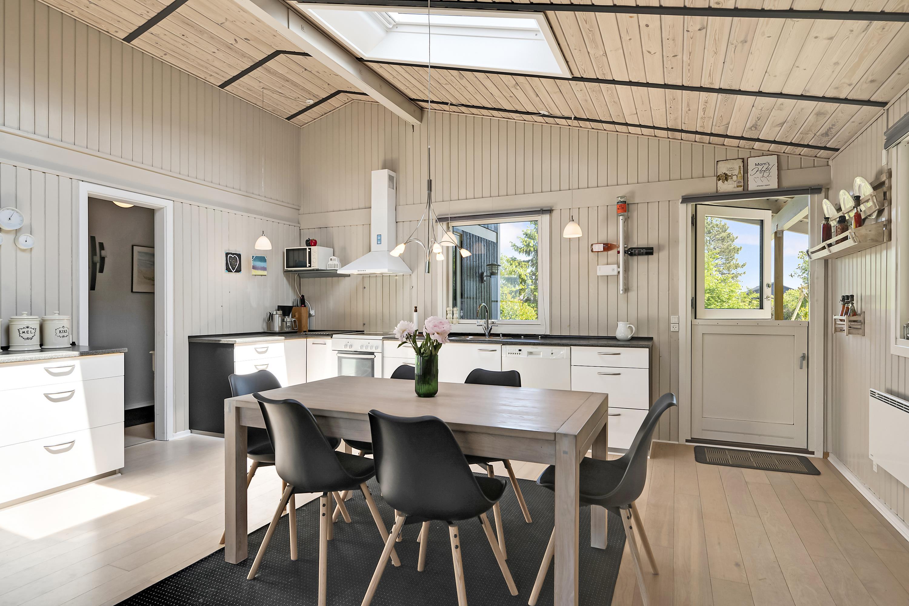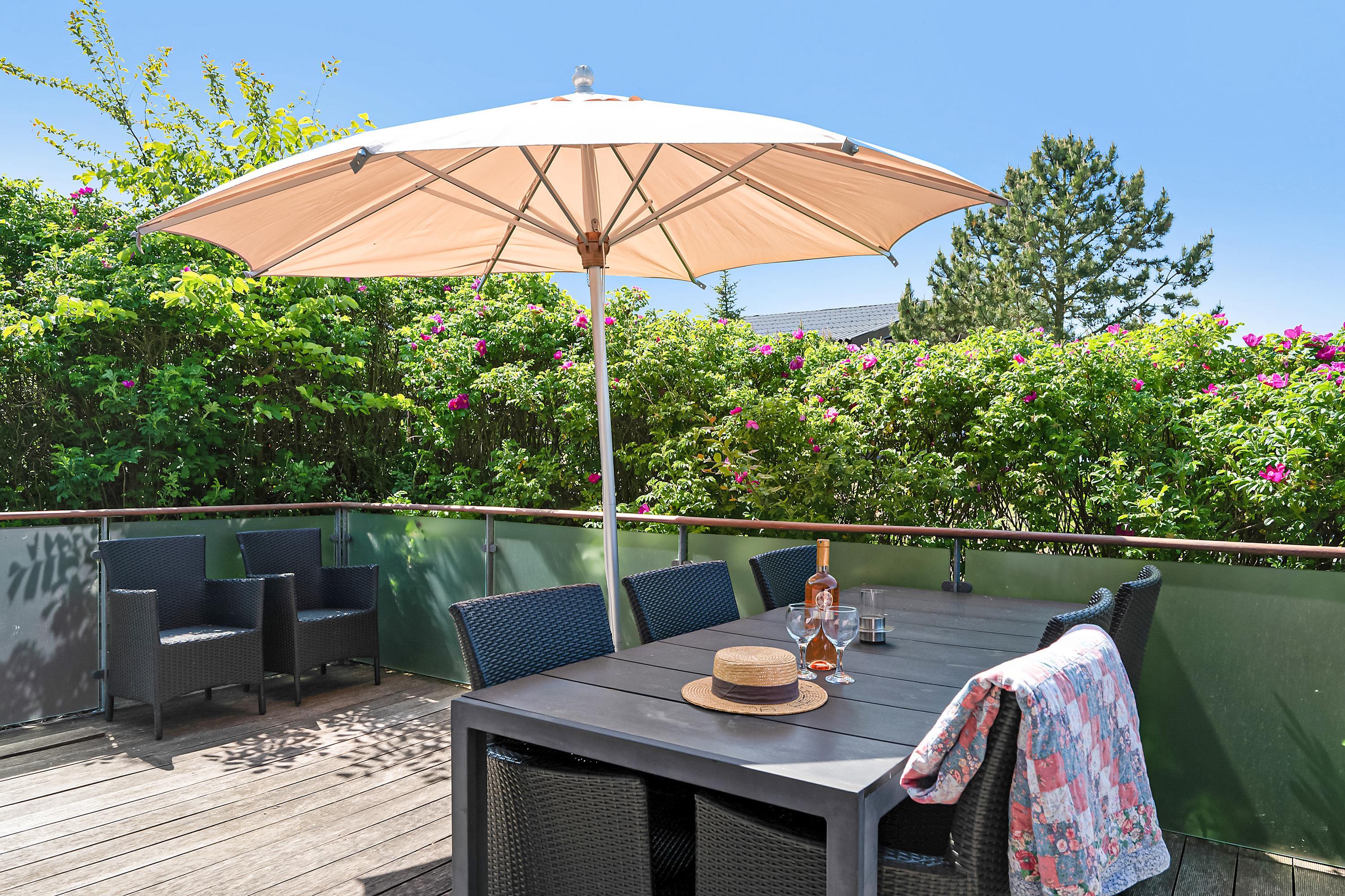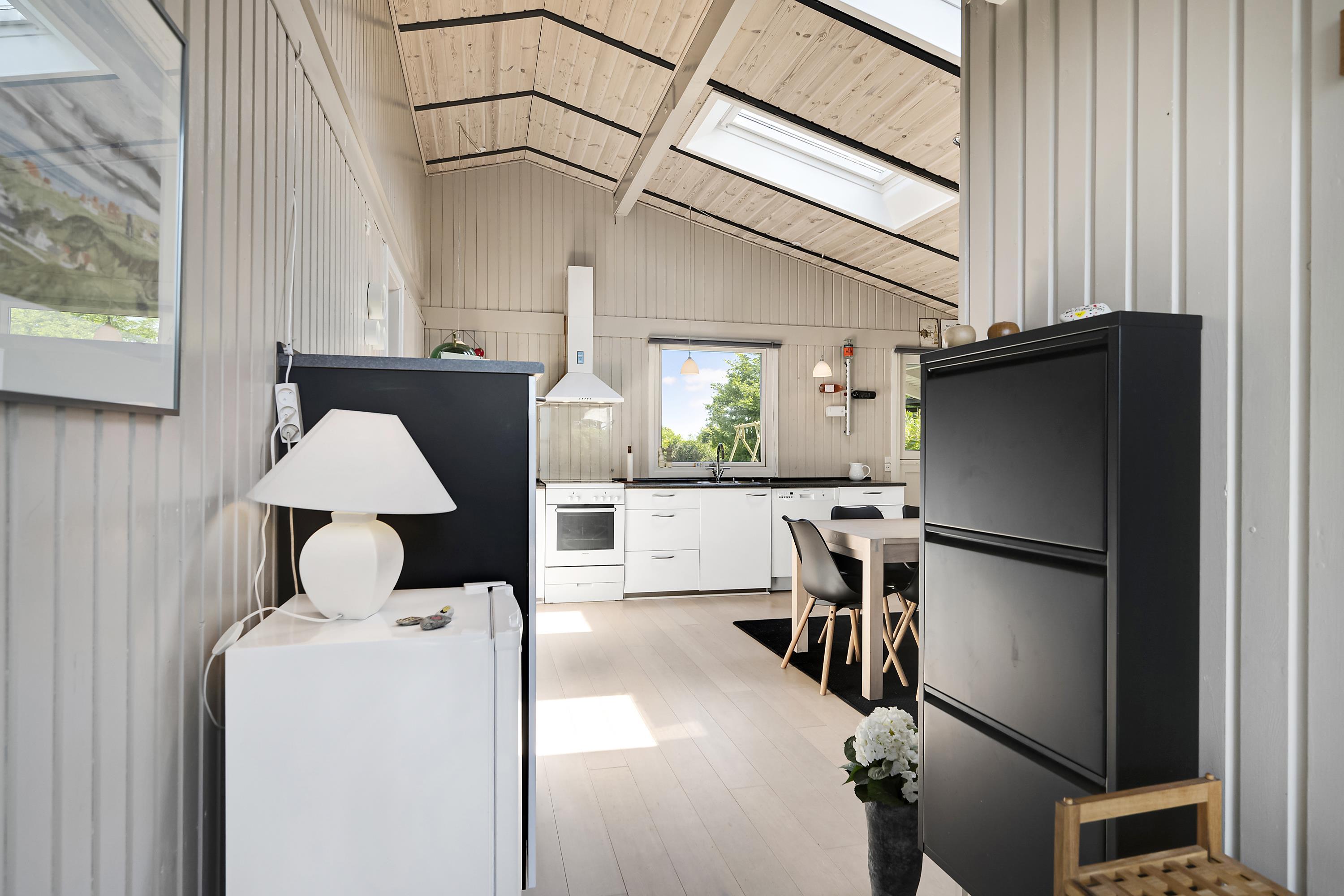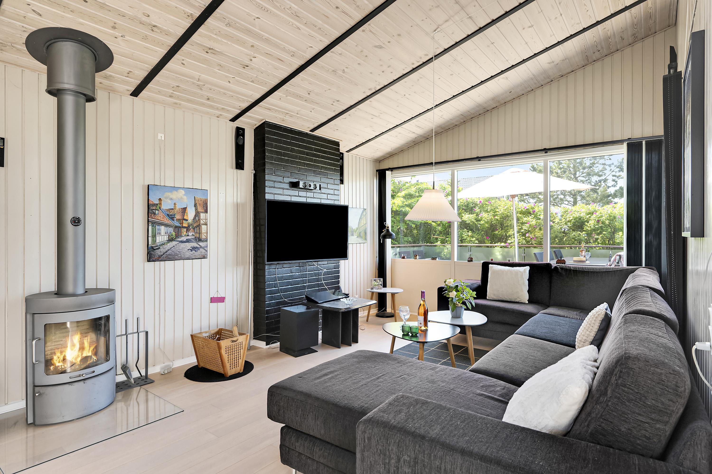Blot 10 min kørsel fra Ebeltoft, finder man dette flotte og særdeles velholdte hus, beliggende tæt på god strand. Huset indeholder en hyggelig stue, møbleret med gode møbler samt brændeovn og varmepumpe. I forbindelse med stuen finder finder man det veludstyrede køkken med en dejlig spiseafdeling, hvorfra der er udgang til terrassen. Husets sovepladser finder man i tre gode værelser, heraf et værelse med dobbeltseng, et værelse med to enkeltsenge samt et værelse med en udtræksseng. Lækkert badeværelse med bruseniche og adgang til vaskemaskine. Til de små feriegæster er der en barnestol. Huset er omkranset af flere gode terrasser, både overdækket og åbne med havemøbler og beliggende på en skøn grund med stor græsplæne, velegnet til hygge og udendørs aktiviteter. Her er der også tænkt på de små feriegæster med b.la. gynge og sandkasse. Der findes desuden et bålsted. Ved siden af huset findes der en lille sti, hvorfra det tager 2 min at nå op på bakketoppen og herfra har man den smukkeste udsigt over Ebeltoft Vig og Mols Bjerge og hvor man i klart vejr kan se Samsø.