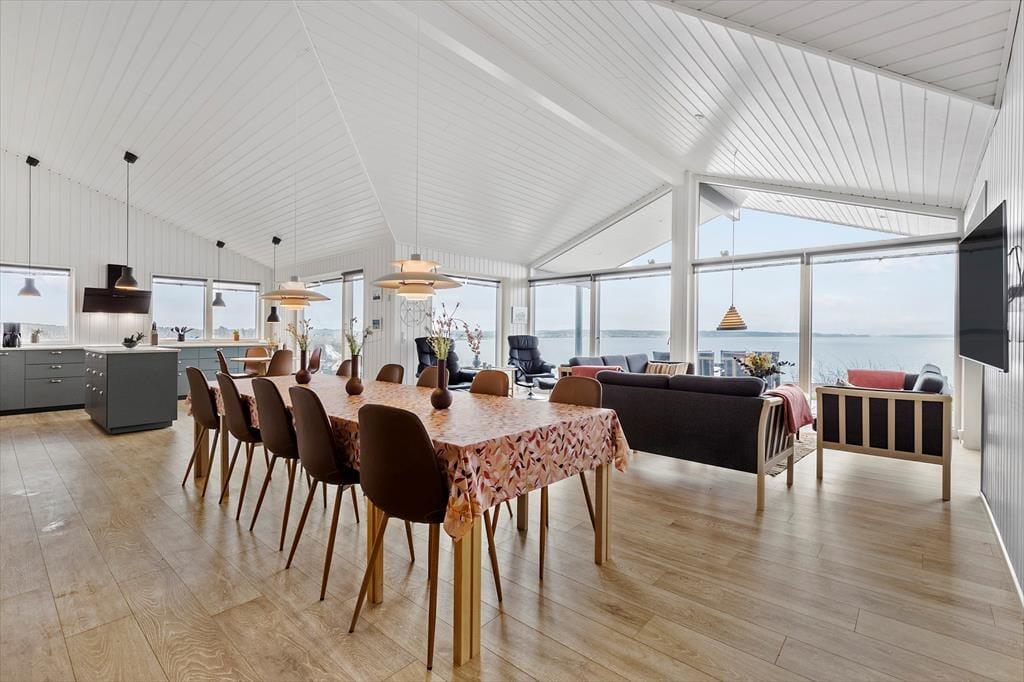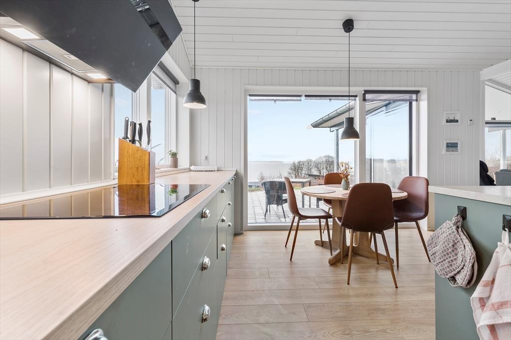 Velkommen til dette skønne, nybyggede (2022) feriehus tæt på Ebeltoft, hvor moderne komfort og hyggelig atmosfære går hånd i hånd. Husets hjerte er det lyse køkken-alrum, der byder på en fantastisk udsigt over Ebeltoft Vig gennem store vinduespartier. Her er et veludstyret køkken med opvaskemaskine og en spiseafdeling, der inviterer til lange middage med udsigt. Stuen er indrettet med gode møbler og direkte udgang til terrassen.