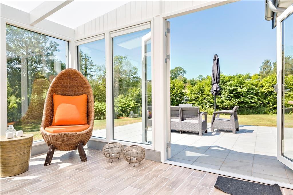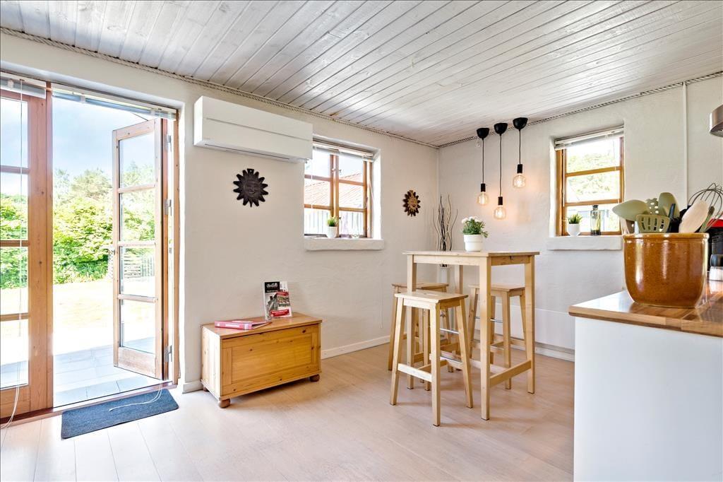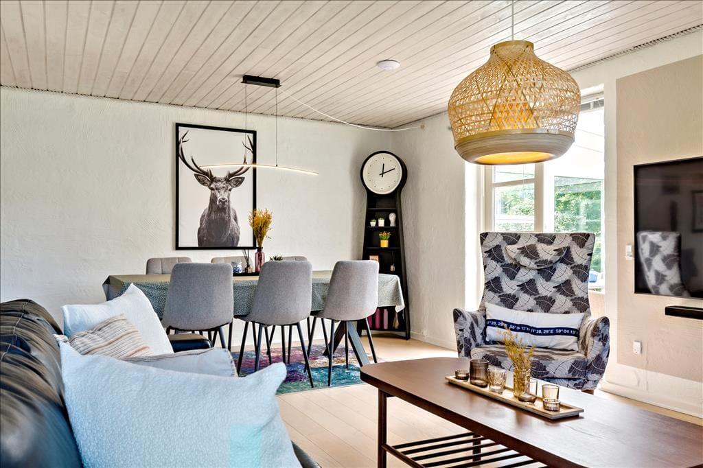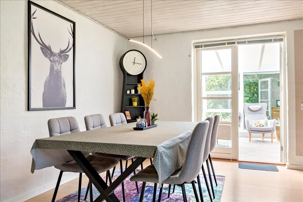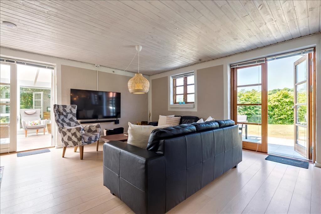Du træder ud på den solrige terrasse, hvor du kan nyde morgenkaffen, grille om aftenen eller bare slappe af på liggestolen. Huset ligger på en dejlig naturgrund og er omgivet af stisystemer – ideelt til gåture og cykelture. Og når du trænger til det, ligger Egsmark Strand tæt på – klar til en frisk dukkert og bløde sandstrande.