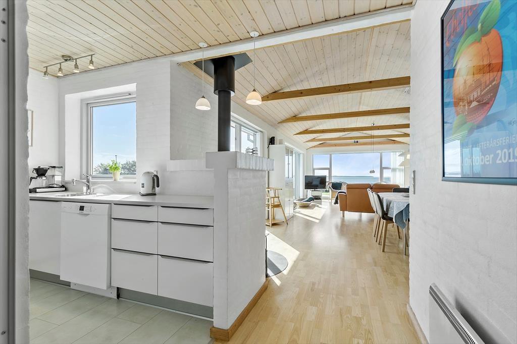Når solen stråler ned fra en klar himmel, er det svært at modstå fristelsen til at nyde livet på den store, indbydende terrasse. Her kan du vælge din perfekte spot – måske starter du dagen med en dampende kop kaffe i hånden, mens du lader blikket glide ud over den betagende panoramaudsigt over Ebeltoft Vig. Når aftenen falder på, tændes grillen eller bål stedet, og med havemøblerne samlet omkring er der skabt den ideelle ramme til lange, hyggelige sommeraftener under åben himmel. Huset, som ligger højt med adgang via en trappe, giver dig en helt uforstyrret udsigt – som om verden står stille, og det hele er dit eget lille ferieparadis.