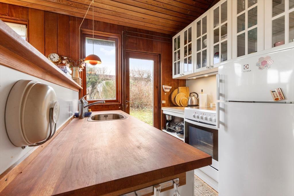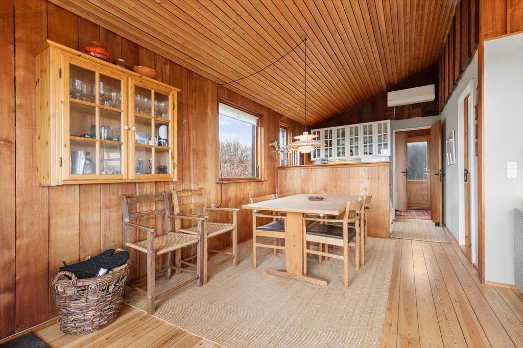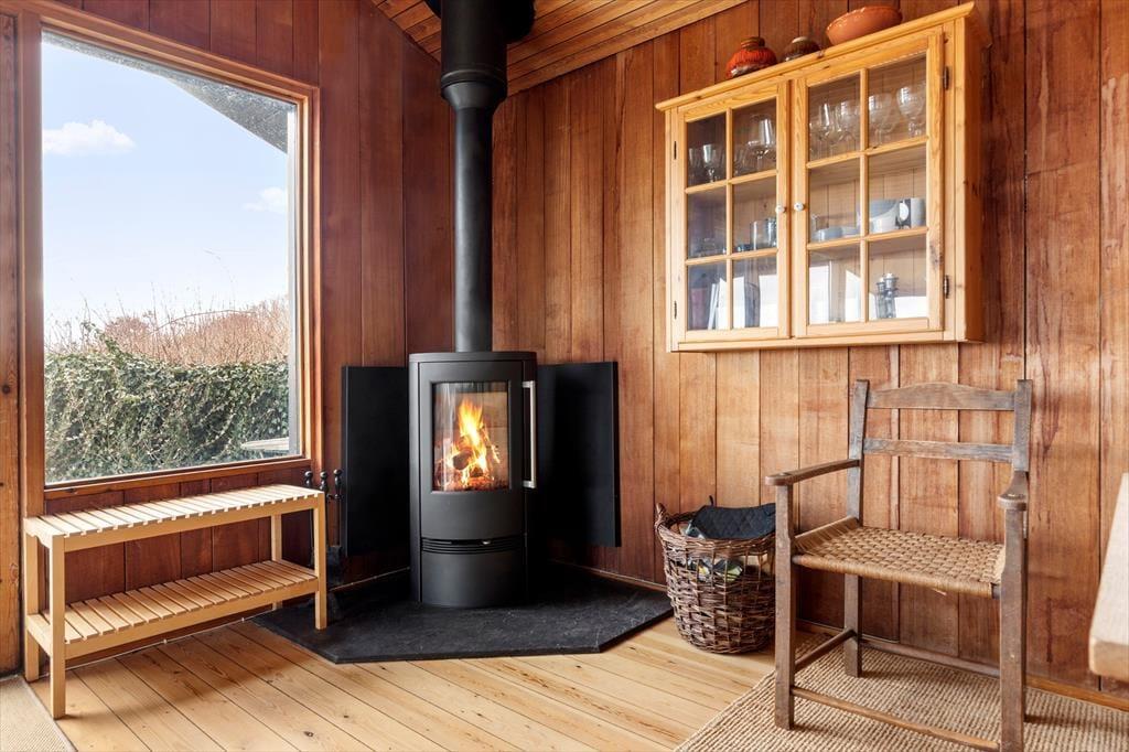 Sommerhus i Ebeltoft, Østjylland, med plads til 5 voksne og 1 husdyr. Der er en hyggelig indretning med bl.a. brændeovn.